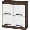 Nowoczesność, świeżość i elegancja - to słowa najlepiej opisujące meble z tej kolekcji. Białe fronty MDF o wysokim połysku kontrastują z pozostałymi elementami brył w kolorze antracytu. Całość dopełniają gustowne witrynki z elementami z hartowanego szkła oraz delikatne, energooszczędne podświetlenie w górnej części mebli. THEA WHITE to propozycja dla osób lubiących nowoczesny styl i niestroniących od odważnych zestawień kolorystycznych.