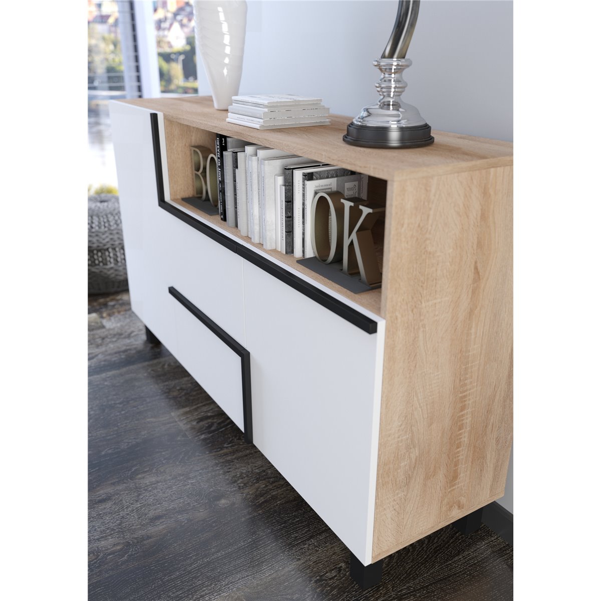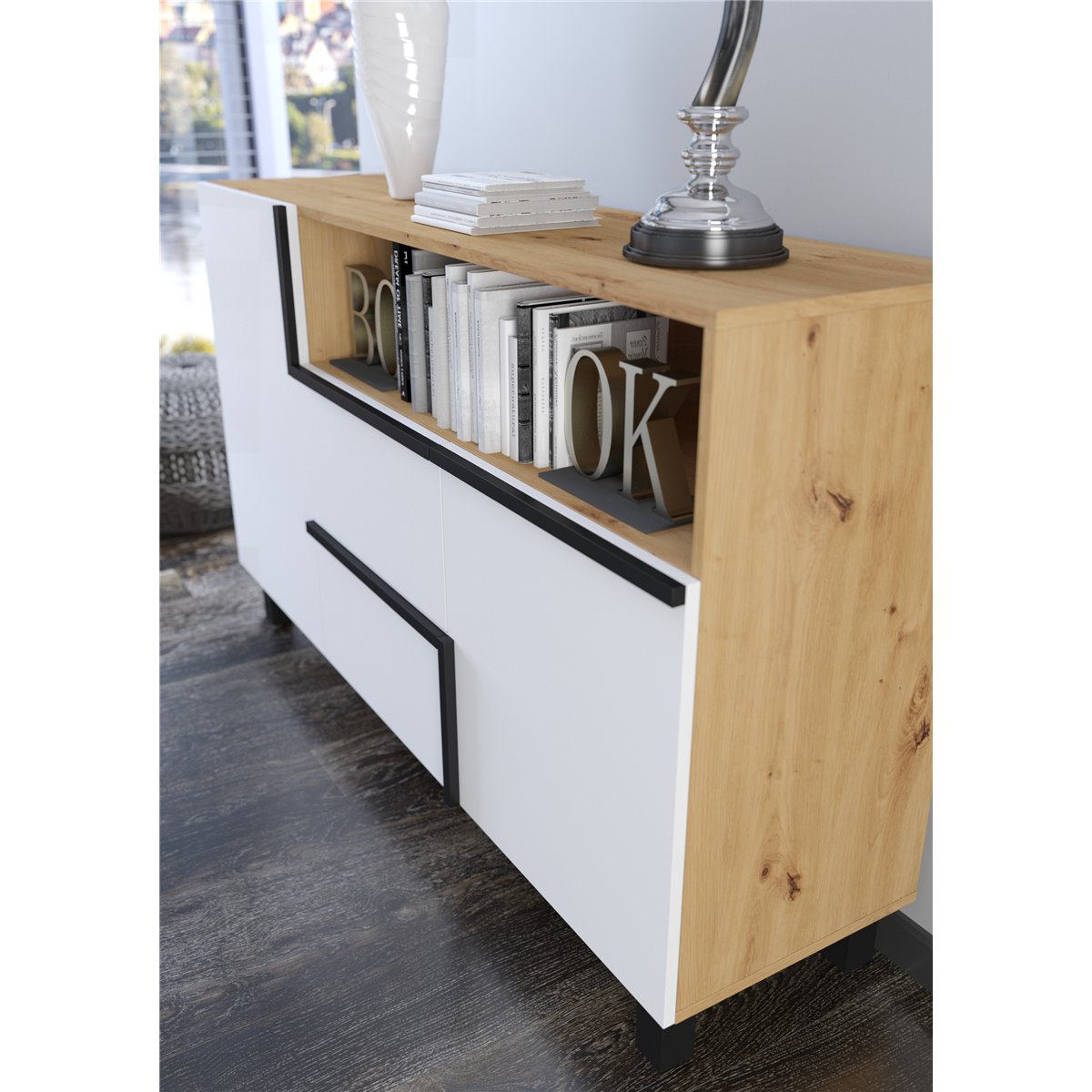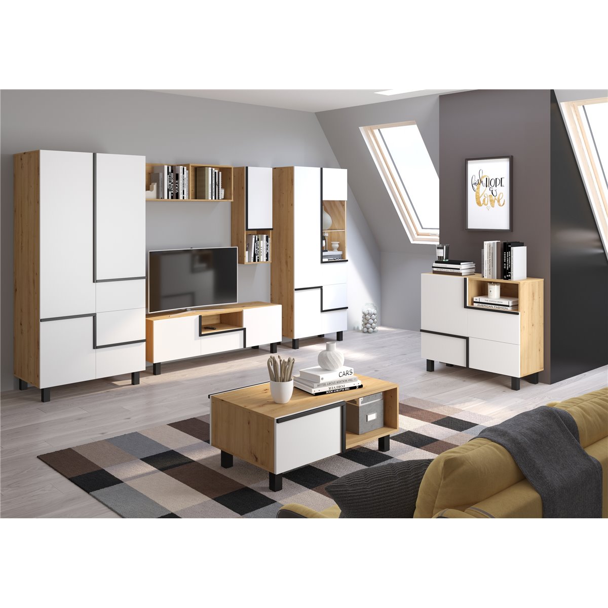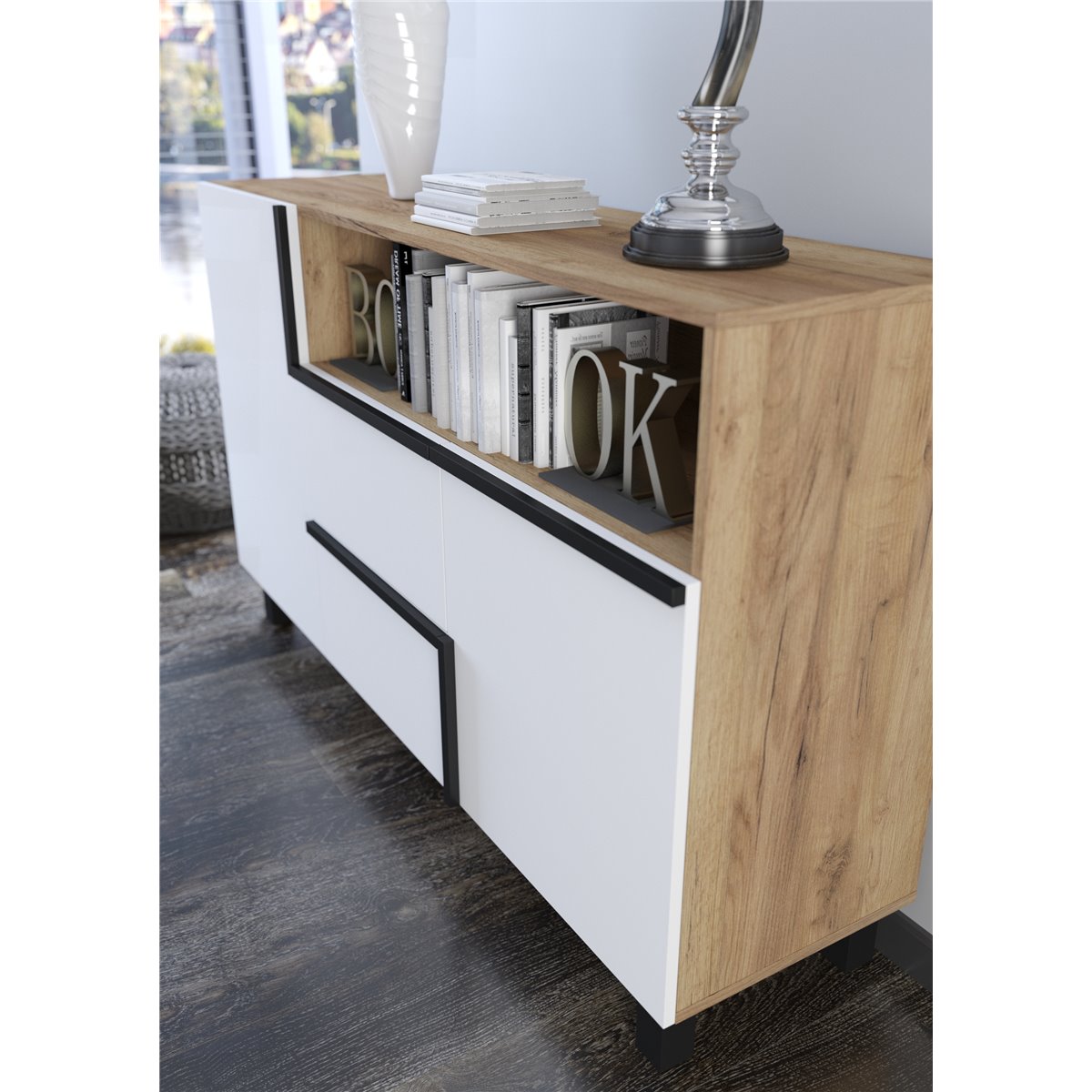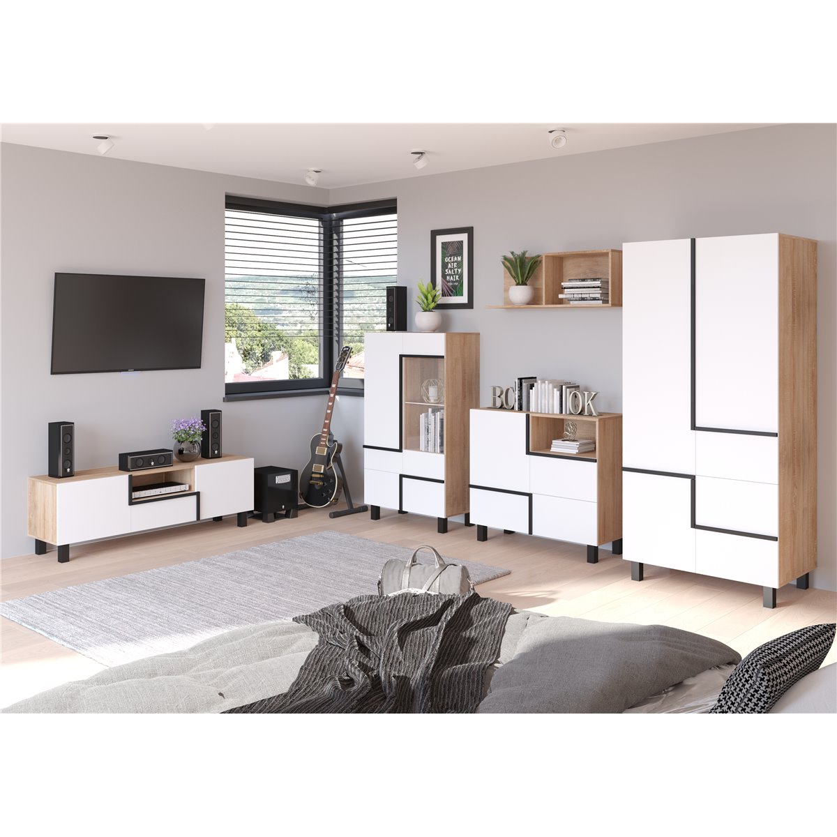 Kolekcja LARS pozwala na aranżację takich pomieszczeń jak salon, pokój dzienny oraz przedpokój. Do produkcji mebli wykorzystano wysokiej jakości płyty laminowane oraz akcesoria, dzięki czemu meble są trwałe i solidne. Dodatkowego uroku i funkcjonalności dodają wysokie drewniane nóżki, dzięki którym sprzątanie salonu będzie łatwe i przyjemne.