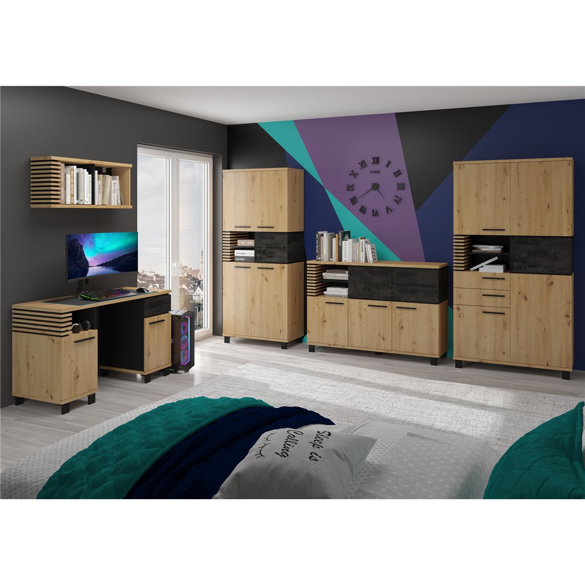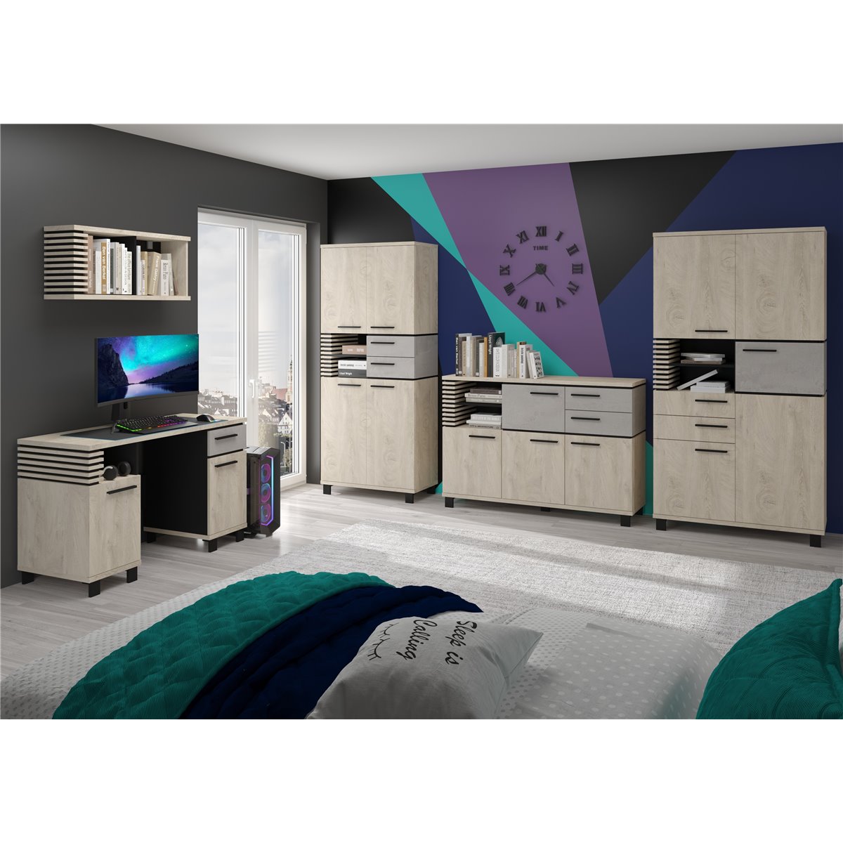 Nowoczesna kolekcja mebli LAMIR to wzornictwo przeznaczone do aranżacji pokoju dziennego, przedpokoju oraz pokoju młodzieżowego. Do wyprodukowania mebli wykorzystano wysokiej jakości płyty meblowe laminowane w kilku wersjach kolorystycznych do wyboru. Dzięki użytym wysokiej jakości materiałom mamy pewność, że meble starczą nam na długie lata.