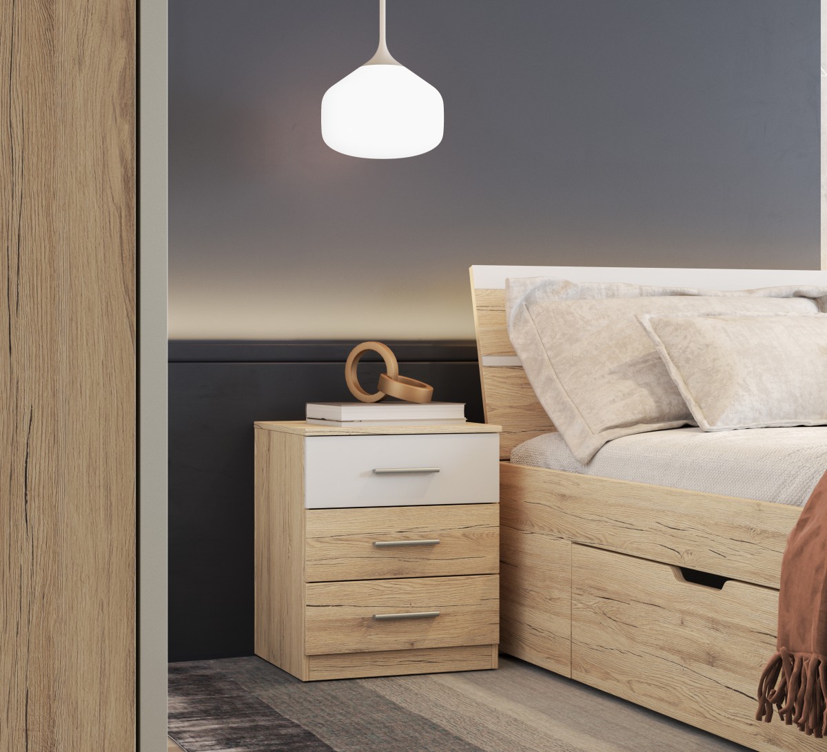 Szafki nocne – jak sama nazwa wskazuje szafka nocna to taki trochę nasz „nocny niezbędnik”. Wbrew pozorom wybór nie zawsze bywa prosty, często zostawiamy go na koniec urządzania sypialni gdy uświadamiamy sobie, że potrzebujemy miejsca przy łóżku na książkę, gazetę lampkę czy szklankę z wodą. Z nami dokonacie Państwo szybkiego i właściwego wyboru. Posiadamy szafki i stoliki nocne w rożnych wielkościach o nowoczesnych i klasycznych kształtach, wykonane z laminowanej płyty meblowej, w macie i połysku. W naszej ofercie można znaleźć praktyczne szafki nocne z szufladkami, z cichym domykiem, w których bez trudu schowamy osobiste przedmioty. Bogata kolorystyka jaką proponujemy powinna być dodatkową inspiracją. Ponieważ nie każdy producent łóżek daje możliwość dobrania do mebla szafek nocnych utrzymanych w takiej samej stylistyce, posiadamy w sprzedaży również samodzielne modele. Hitem sprzedaży są szafki nocne tapicerowane, najczęściej w ekoskórze dostępne w rożnych formach i kolorach. Dedykowane są nie tylko do łóżek tapicerowanych, świetnie sprawdzają się w połączaniu z łóżkami o nowoczesnych kształtach tworząc niebanalne wnętrze. Zapraszamy! :)