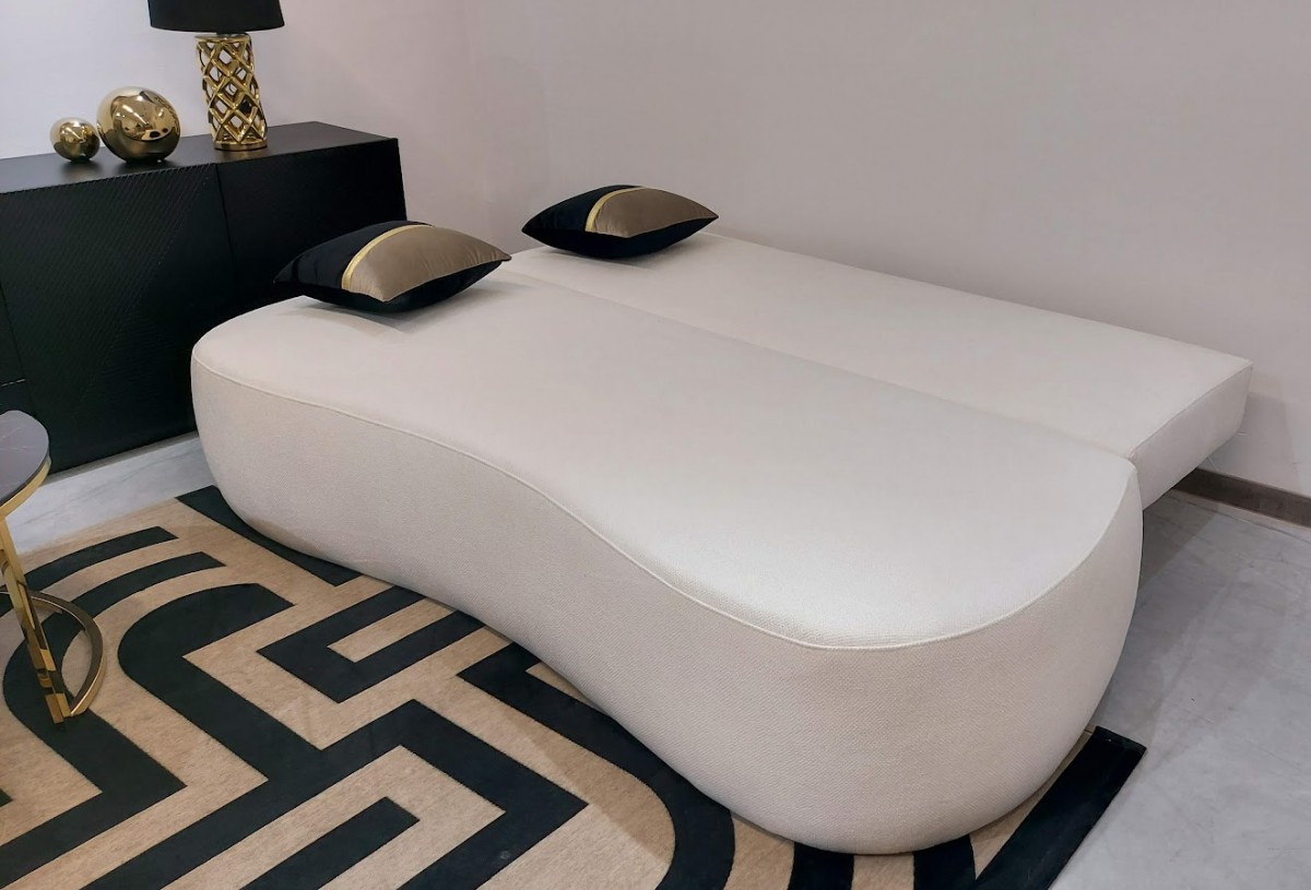 Siedzisko odkładamy do przodu (pod siedziskiem pojemnik) > oparcie kładziemy > gotowe, sofa rozłożona do spania.