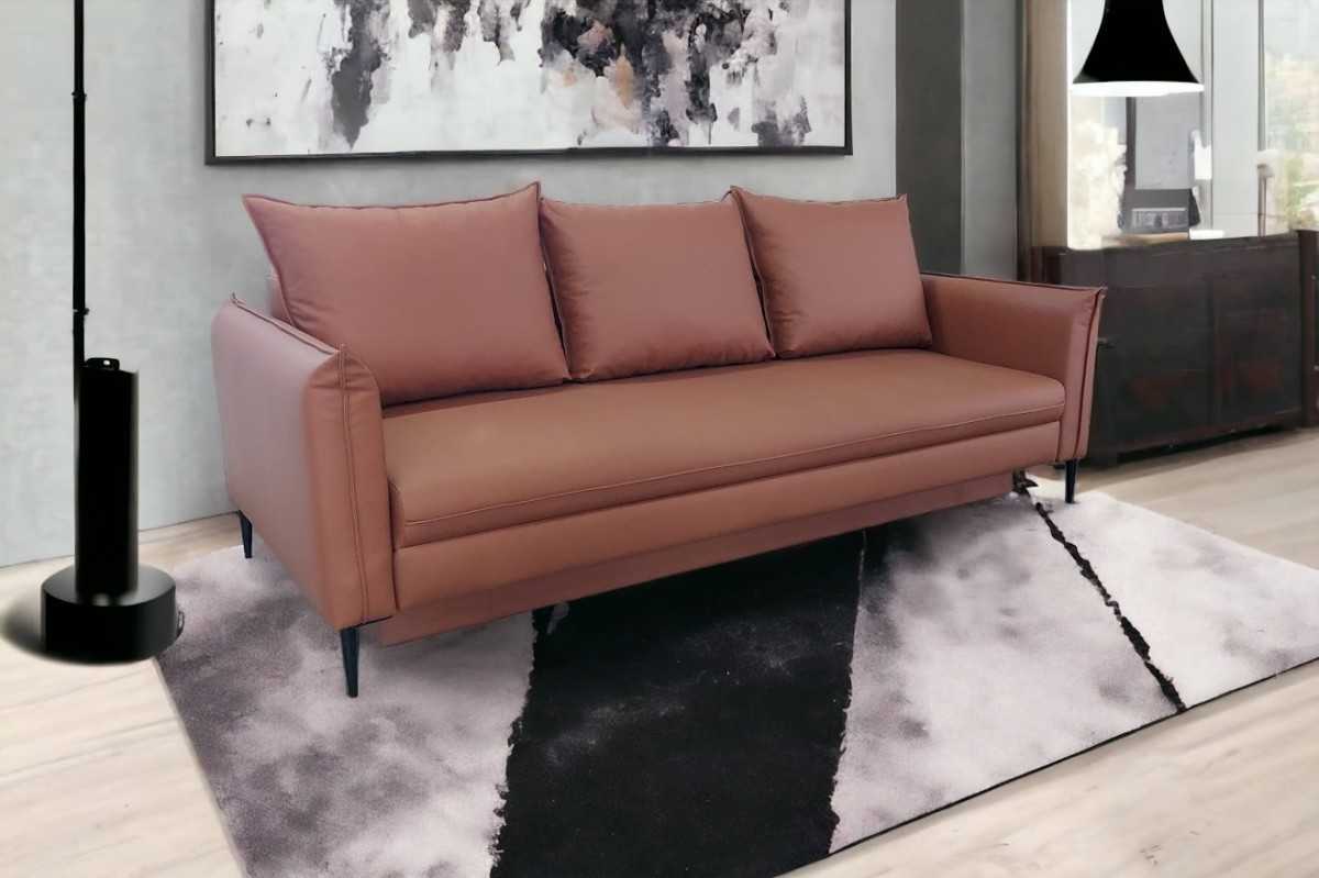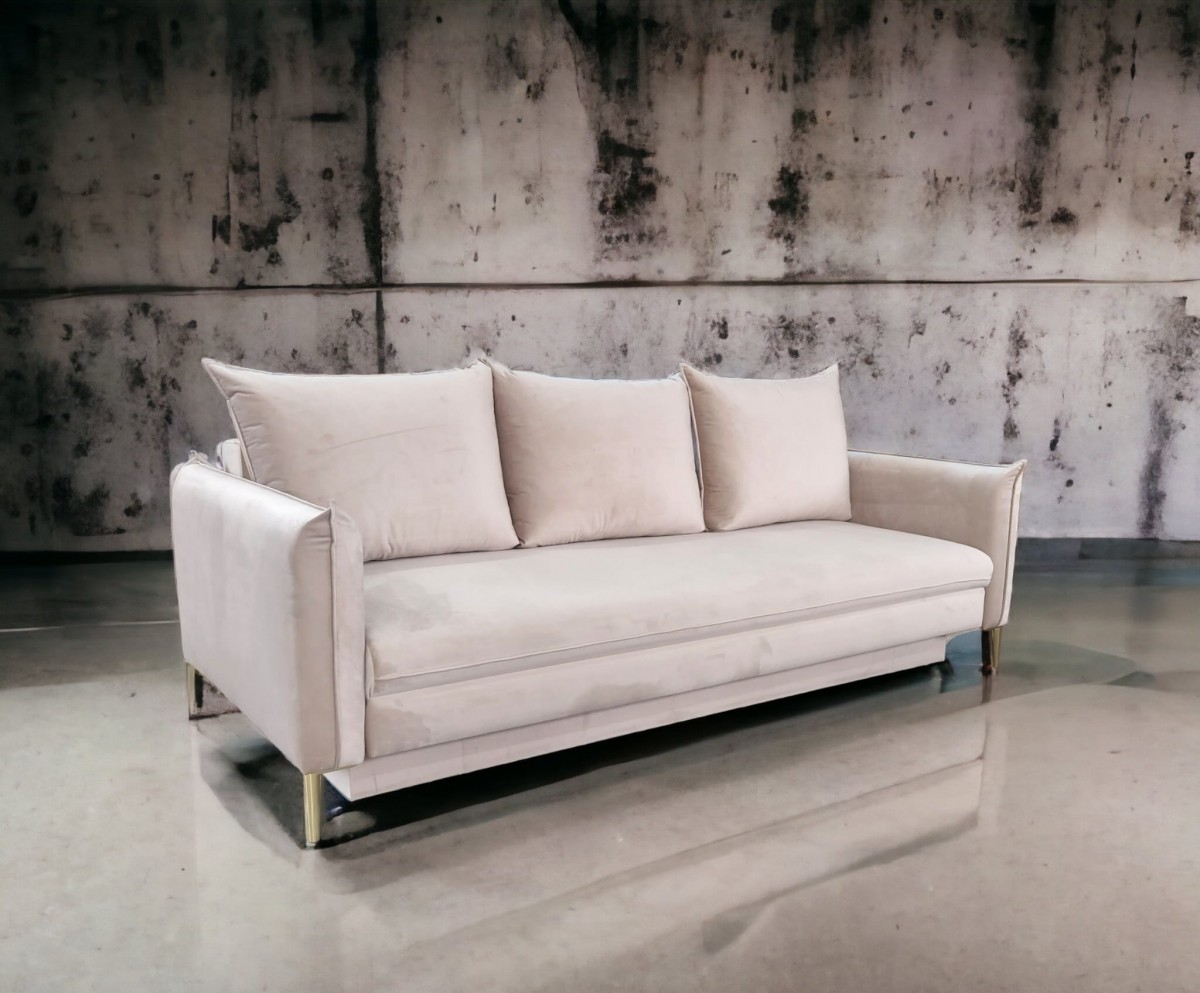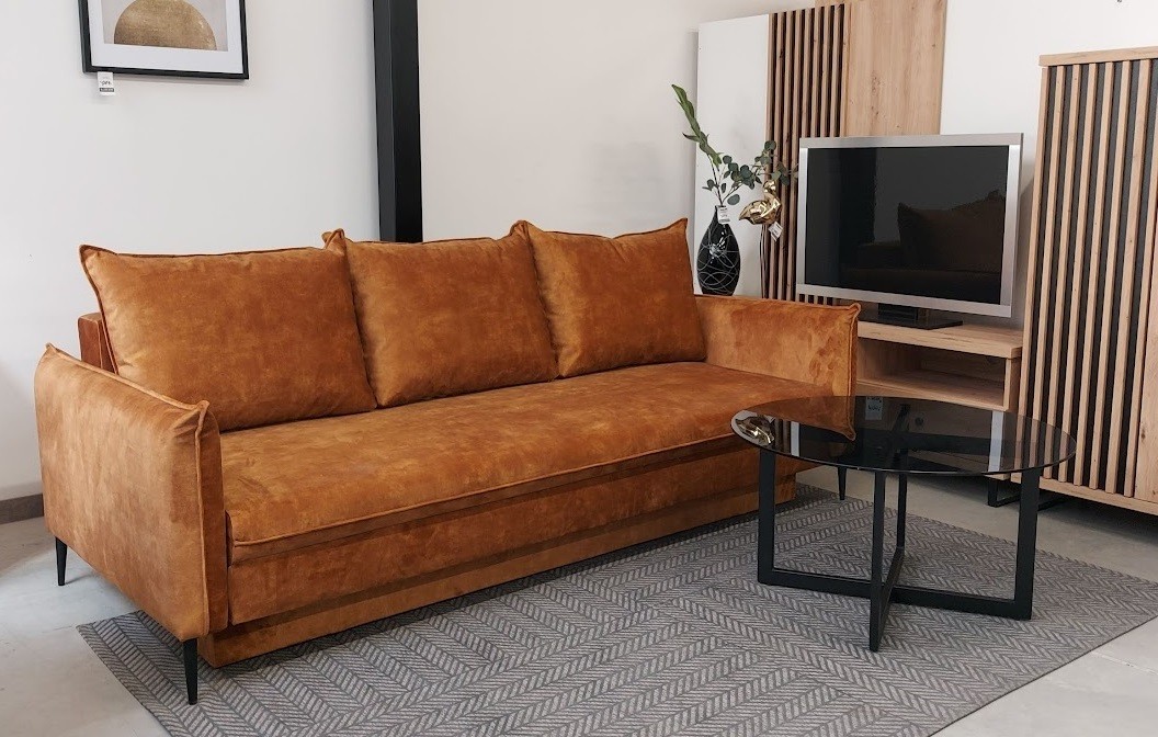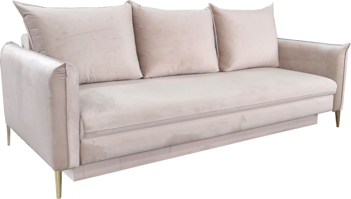 Siedzisko odkładamy do przodu (pod siedziskiem pojemnik) > oparcie kładziemy > gotowe, sofa rozłożona do spania.