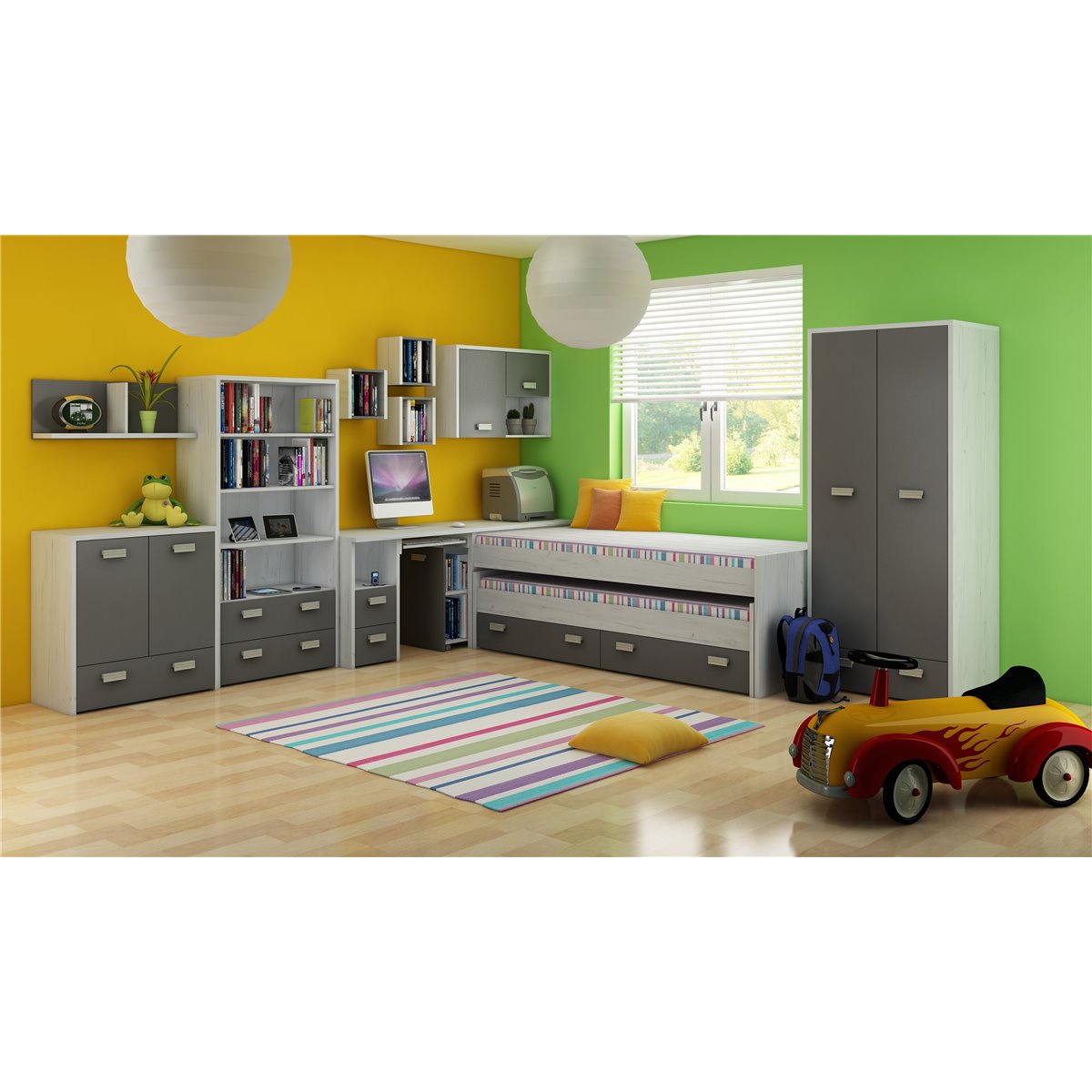 Kolekcja KITTY to nowoczesne meble przeznaczone do aranżacji pokoju młodzieżowego oraz dziecięcego. Kolekcje wyprodukowano z wysokiej jakości płyty meblowej laminowanej w kilku wersjach kolorystycznych do wyboru. Różnorodność brył oraz możliwość wyboru jej wyglądu ostatecznego przez wybór kolorystyki sprawia, że kolekcja jest niebywale uniwersalna jeśli chodzi o wiek, ale i płeć dziecka. Do wyboru są wersje kolorystyczne, które świetnie sprawdzą się w pokoju chłopca jak i dziewczynki. Prosta forma mebli sprawia, że można je ze sobą zestawić na różne sposoby. Zapraszamy do zapoznania się z ofertą!