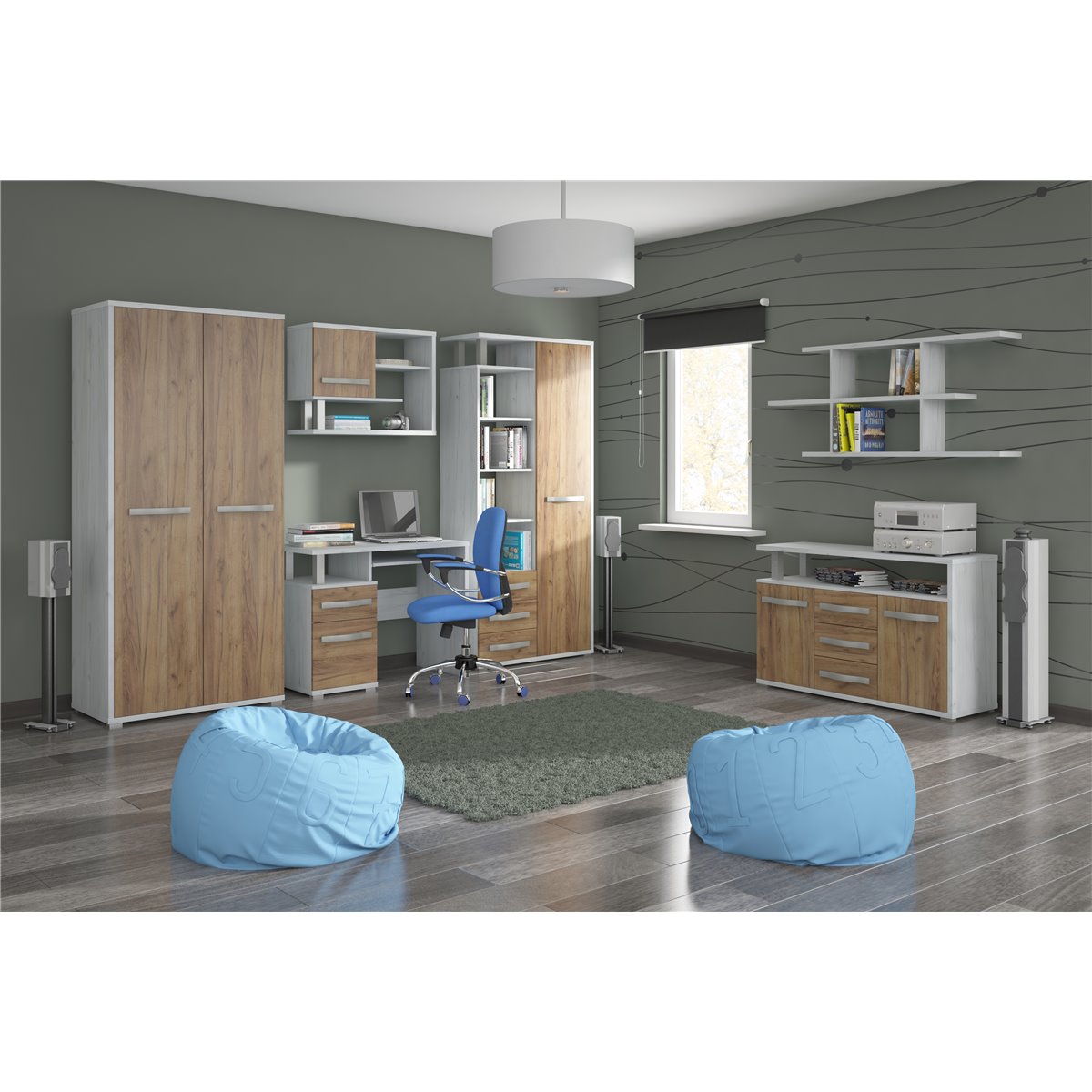 Meble z serii ANGEL firmy Meblocross to nowoczesne meble przeznaczone do aranżacji pokoju dziennego oraz pokoju młodzieżowego. System mebli został wykonany z wysokiej jakości płyty meblowej laminowanej. Kolekcja została wykonana w kilku wersjach kolorystycznych do wyboru. Dzięki użytym materiałom do produkcji mamy pewność, że meble będą nam służyć przez długie lata.