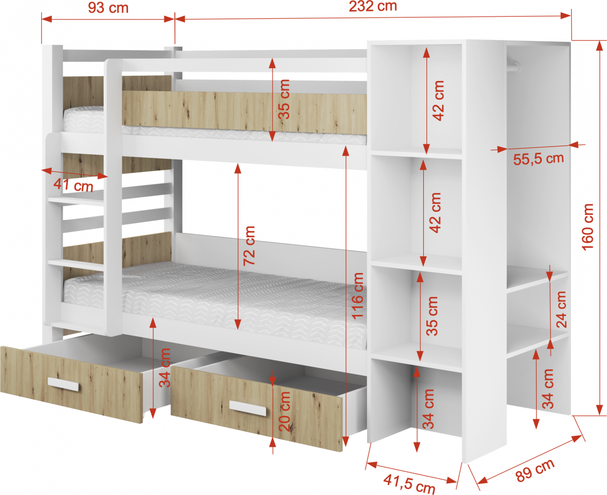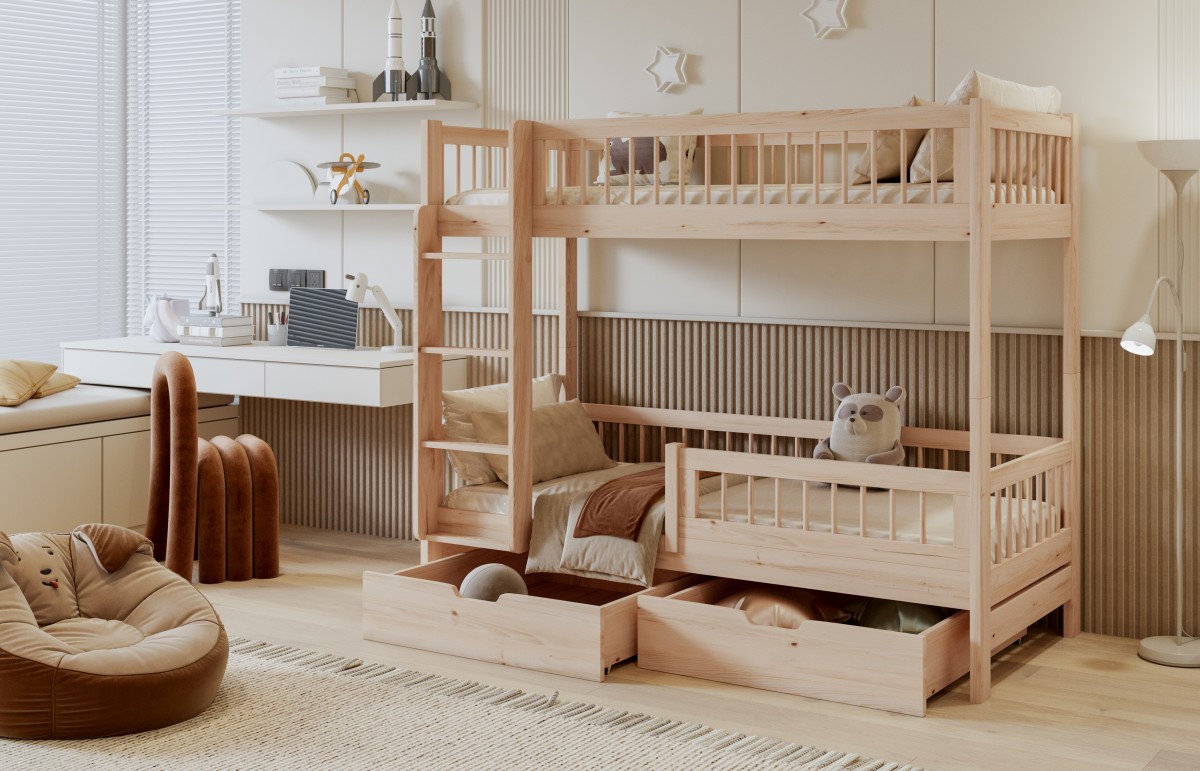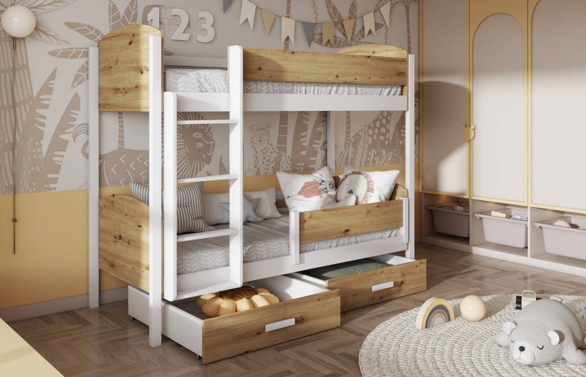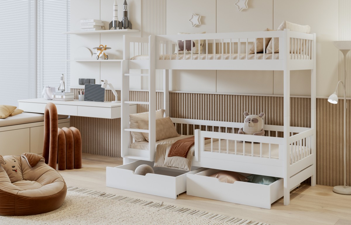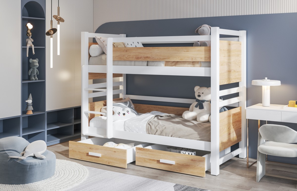 Pokój dziecięcy czy młodzieżowy powinien zapewniać optymalne warunki do odpoczynku, zabawy i nauki. Warto dopasować pokój dziecka do jego oczekiwań i preferencji. Ciekawą alternatywą wobec tradycyjnych łóżek dziecięcych są łóżka piętrowe. W łóżka piętrowe warto zainwestować także wtedy, kiedy dziecięcy pokój w Państwa mieszkaniu lub domu nie ma zbyt wiele przestrzeni. Zakup łóżka piętrowego wiąże się z niższym kosztem, niż w przypadku zakupu dwóch pojedynczych łóżek. Wówczas dwupoziomowe łóżko zapewni komfortowe warunki do spania dla dwojga maluchów. Wybór łóżka piętrowego to rozwiązanie praktyczne i bardzo atrakcyjne wizualnie. Łóżka piętrowe mogą być też połączone z biurkiem czy regałem. Wówczas łączą w sobie wygodę odpoczynku z możliwością nauki. Niektóre modele mają wbudowane pojemne szuflady na pościel czy akcesoria. W naszym sklepie proponujemy Państwu wysokiej jakości łóżka piętrowe od renomowanych producentów, dopracowane w najmniejszych szczegółach. Bogata oferta produktów pozwoli Państwu na niemal nieograniczone możliwości aranżacyjne. Łóżka piętrowe to atrakcyjne wizualnie meble, które przypadną do gustu każdemu maluchowi.
