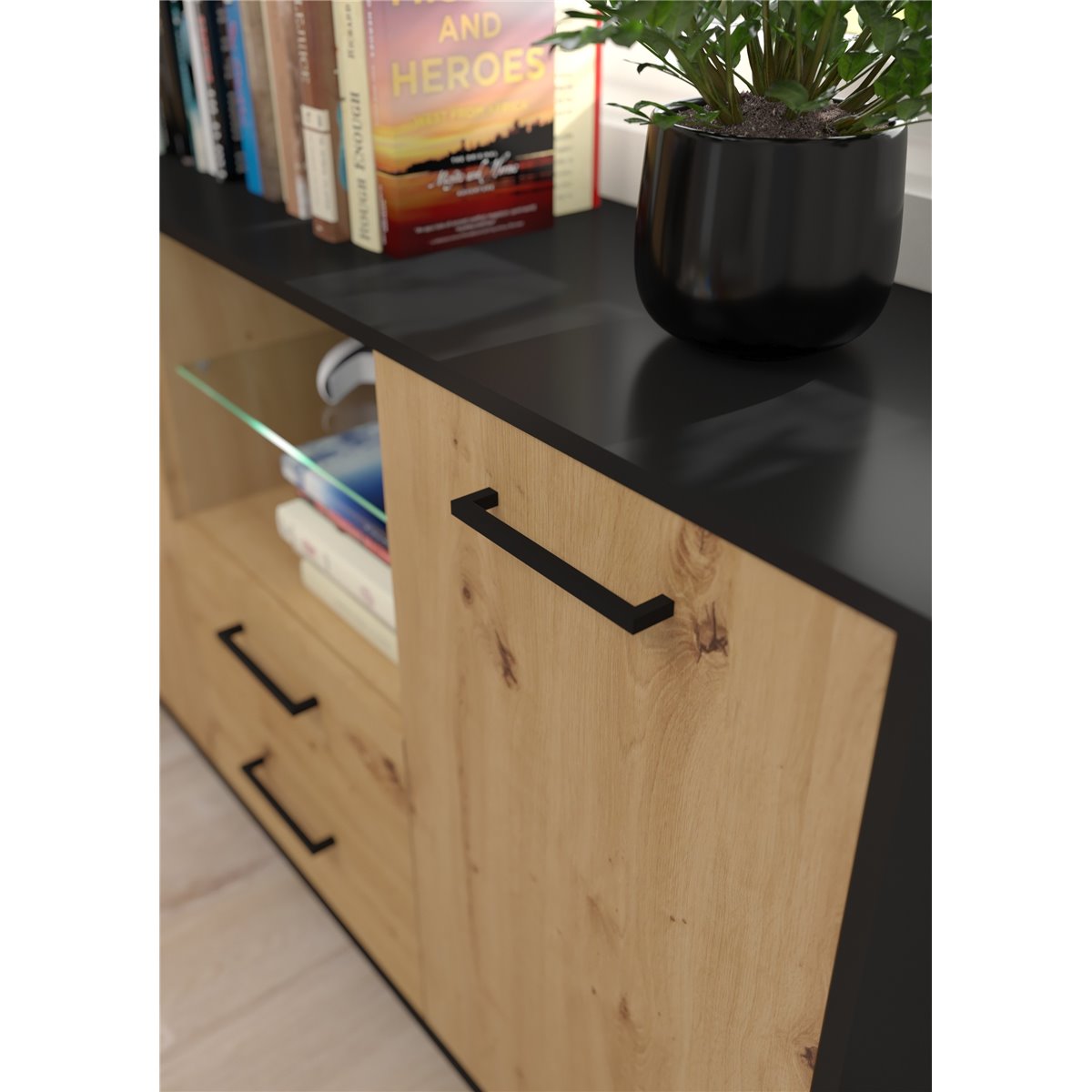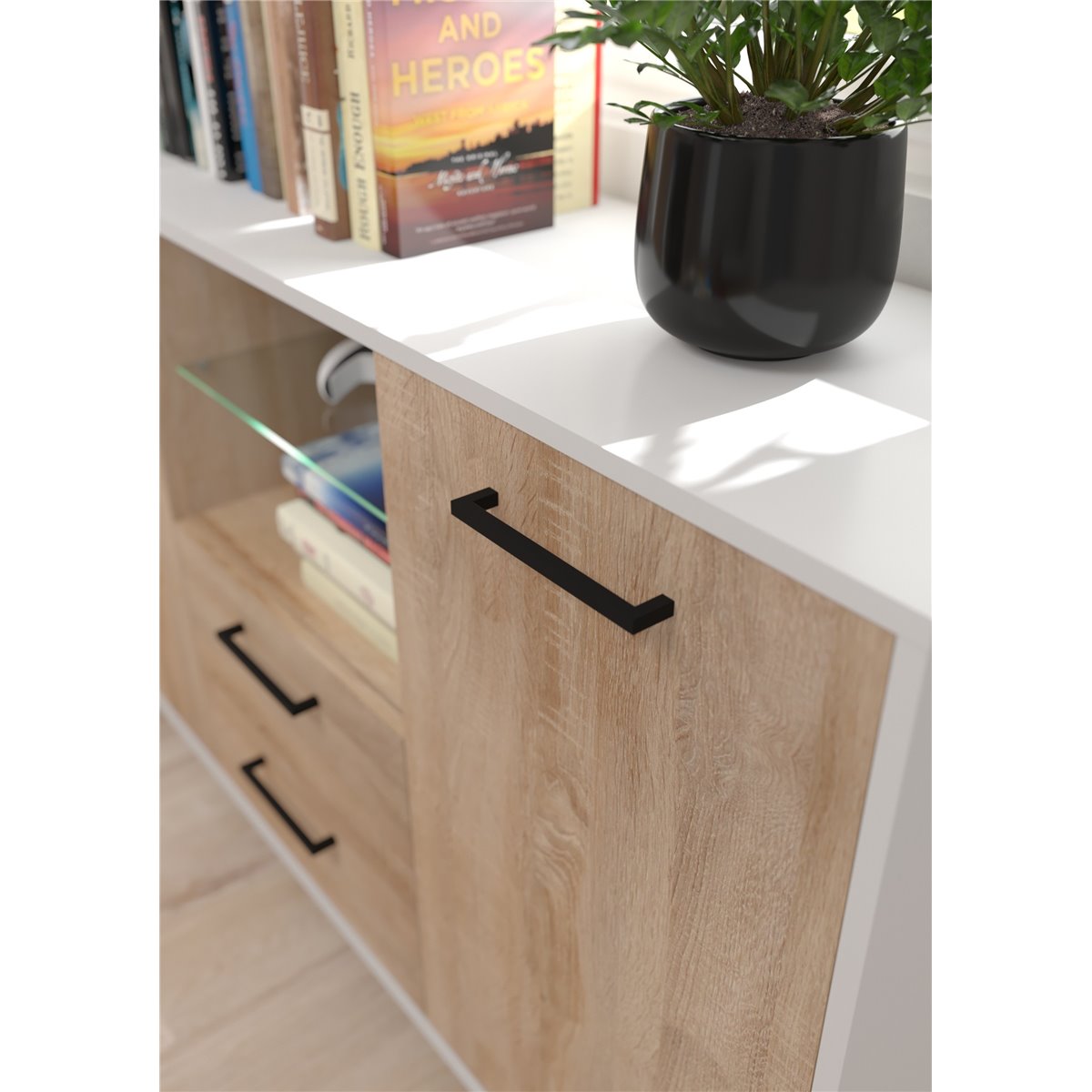 Kolekcja BOSS to meble o nowoczesnej linii. Do produkcji mebli wykorzystano najwyższej jakości płyty laminowane oraz akcesoria, dzięki czemu meble są trwałe i solidne. Na uwagę zasługują wysokie, metalowe nóżki w kolorze czarnym. Kolekcja jest dostępna w kilku wersjach kolorystycznych do wyboru. Świetnie sprawdzi się w salonie, pokoju dziennym, przedpokoju ale i sypialni czy pokoju młodzieżowym!