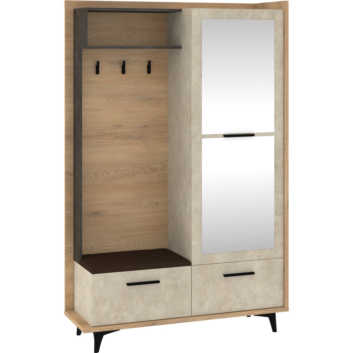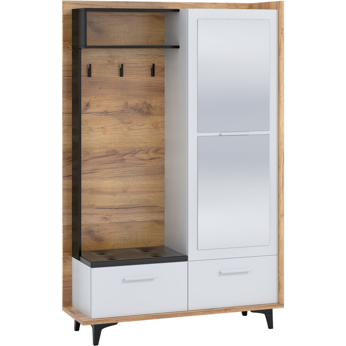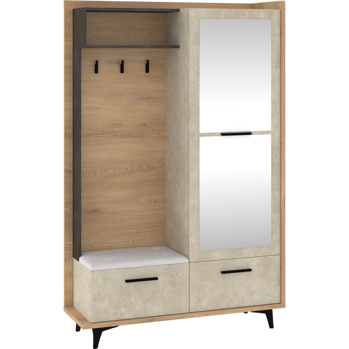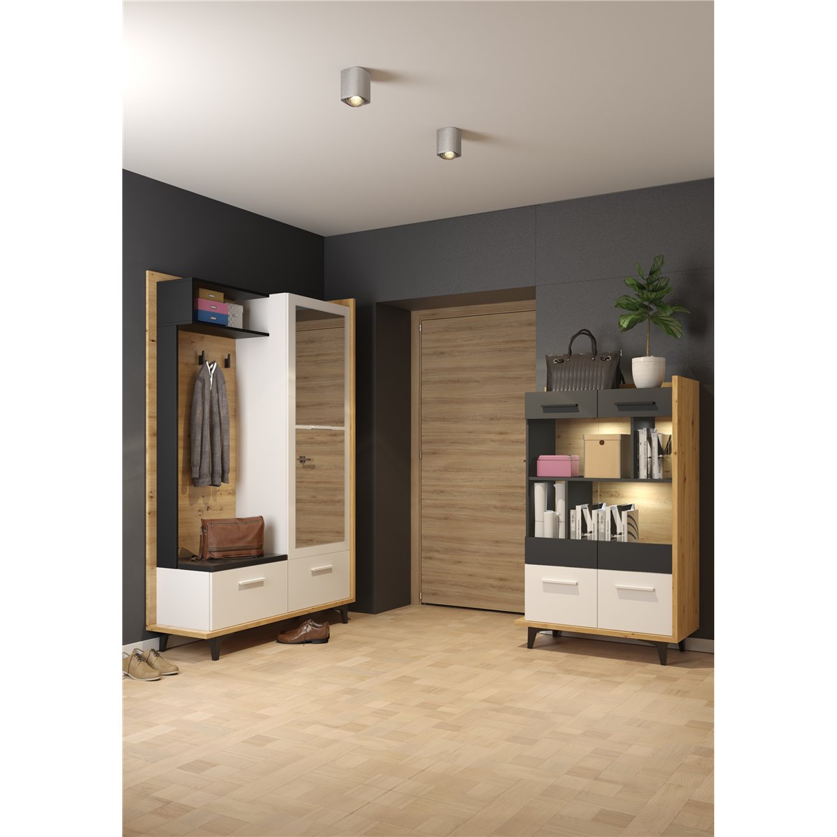 Przedpokój BOX składa się z części 3-drzwiowej oraz lustra na jednym z frontów. Wewnątrz znajduje się praktyczny drążek na wieszaki. Zamontowany dodatkowo cichy domyk sprawia, że drzwiczki zamykają się płynnie i cicho. Nowoczesna forma sprawi, że wnętrze nabierze nowego charakteru. Dzięki szerokiej gamie kolorów do wyboru na pewno wybierzesz coś dla siebie.
