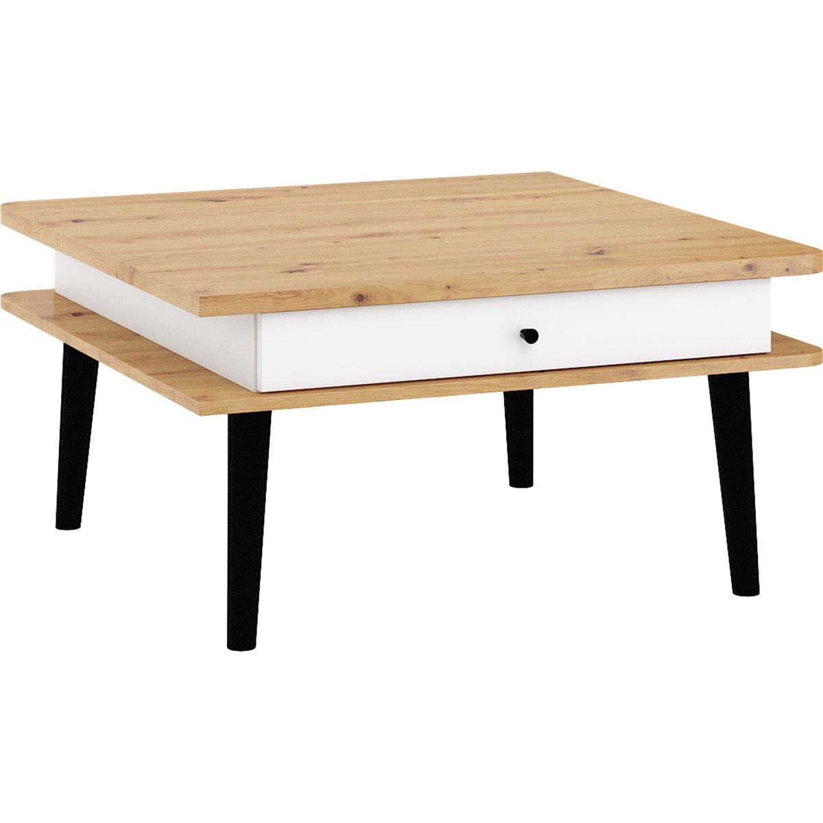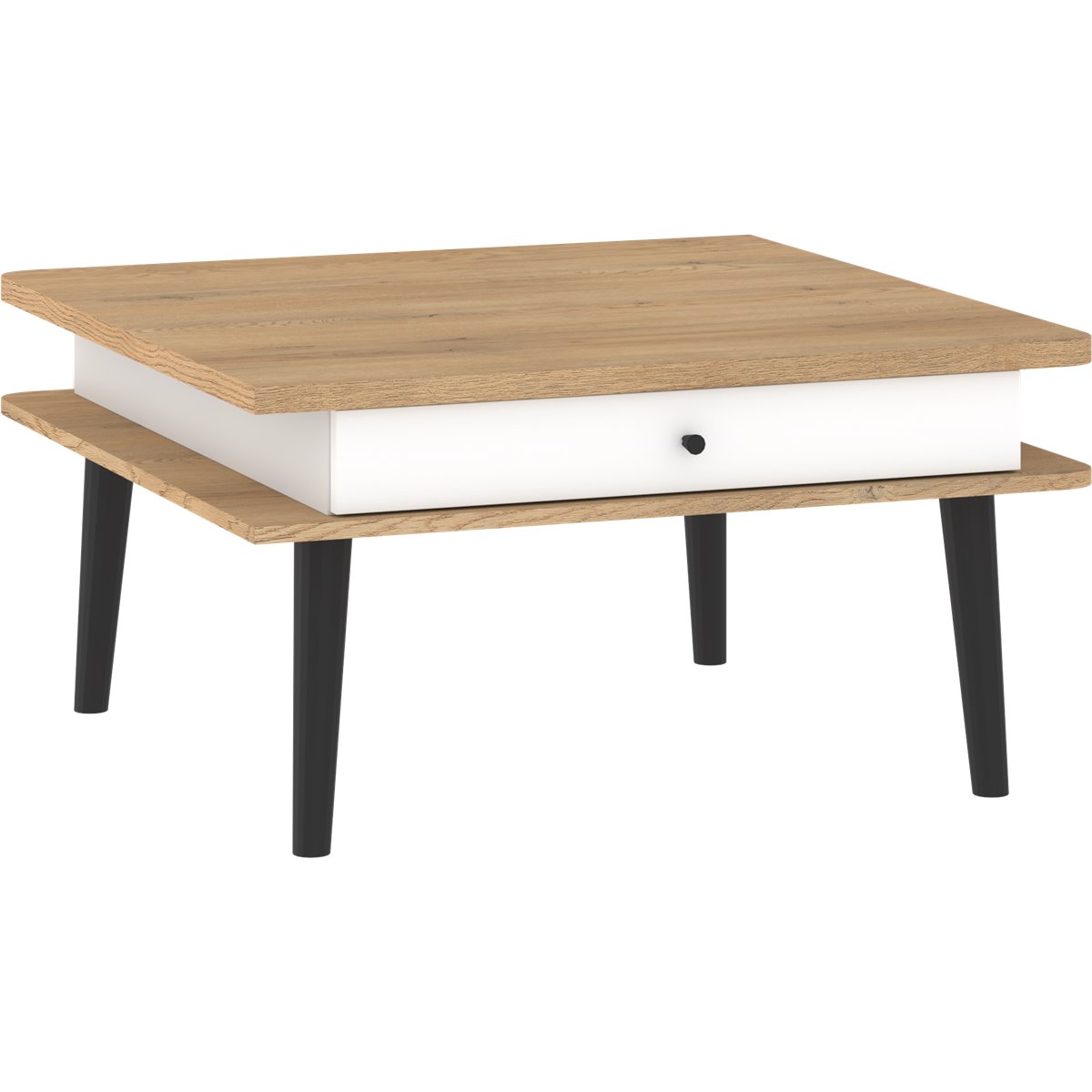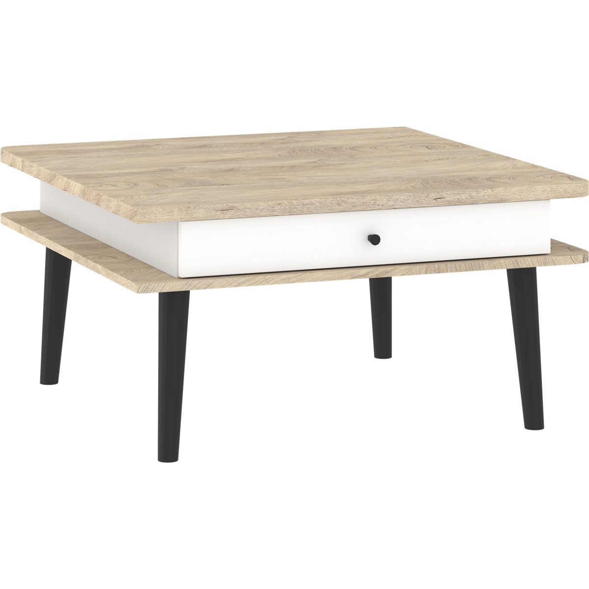 Ława DOLCE wyposażona w 2 praktyczne szuflady. Szuflady w standardzie posiadają cichy domyk co sprawia, że zamykają się płynnie. Drewniane, czarne nóżki podkreślają charakter mebla. Dzięki szerokiej gamie kolorów do wyboru na pewno wybierzesz coś dla siebie.