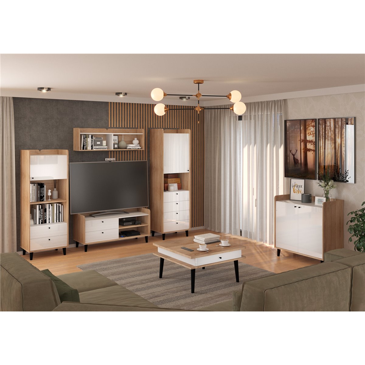 Kolekcja DOLCE to wysokiej jakości meble pokojowe. Połączenie minimalizmu, nowoczesności i klasyki. Zestawy brył wykonane są z wysokiej jakości materiałów; płyty meblowe użyte do produkcji zostały wzmocnione obrzeżami z ABS, a nóżki w meblach stojących wykonane są z litego drewna. Opcjonalnie można dokupić oświetlenie LED w rożnych kolorach.