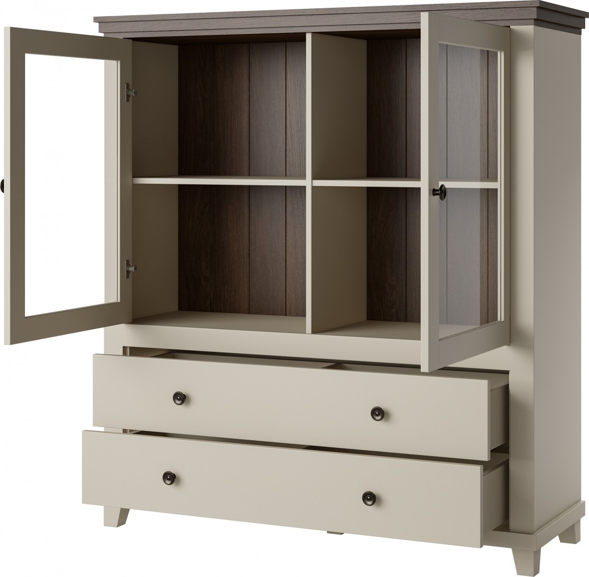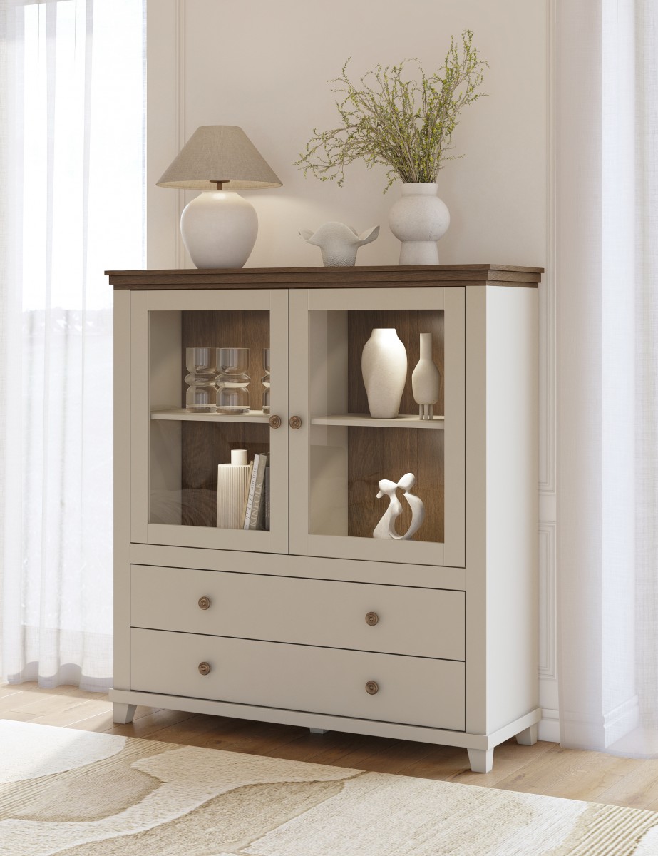 Do Państwa dyspozycji są komody, witryny oraz stolik i stół rozkładany. Seria mebli została powiększona również o meble do sypialni takie jak łóżka o różnych wymiarach oraz funkcjonalne szafy. Atutem kolekcji jest możliwość zamontowania w witrynach dodatkowego oświetlenia LED.
