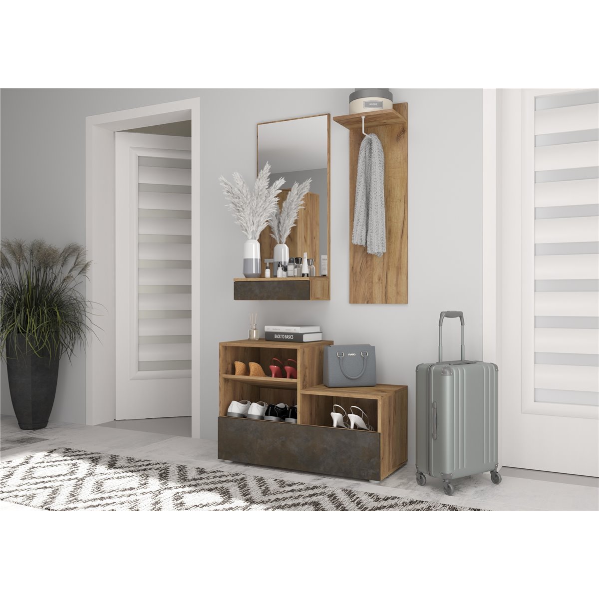 Przedpokój CITY to praktyczny zestaw mebli w szerokiej gamie kolorów do wyboru, który idealnie wpasuje się w każdą kolorystyke pomieszczenia. Ten funkcjonalny komplet mebli, będzie świetnym wyborem do niewielkiego pomieszczenia.