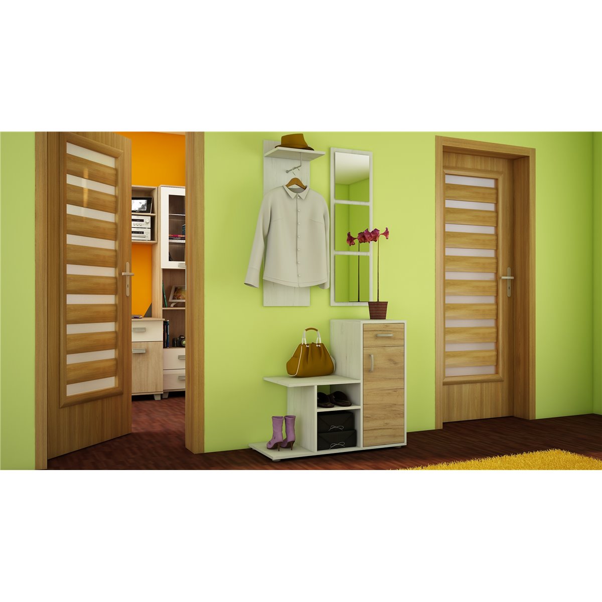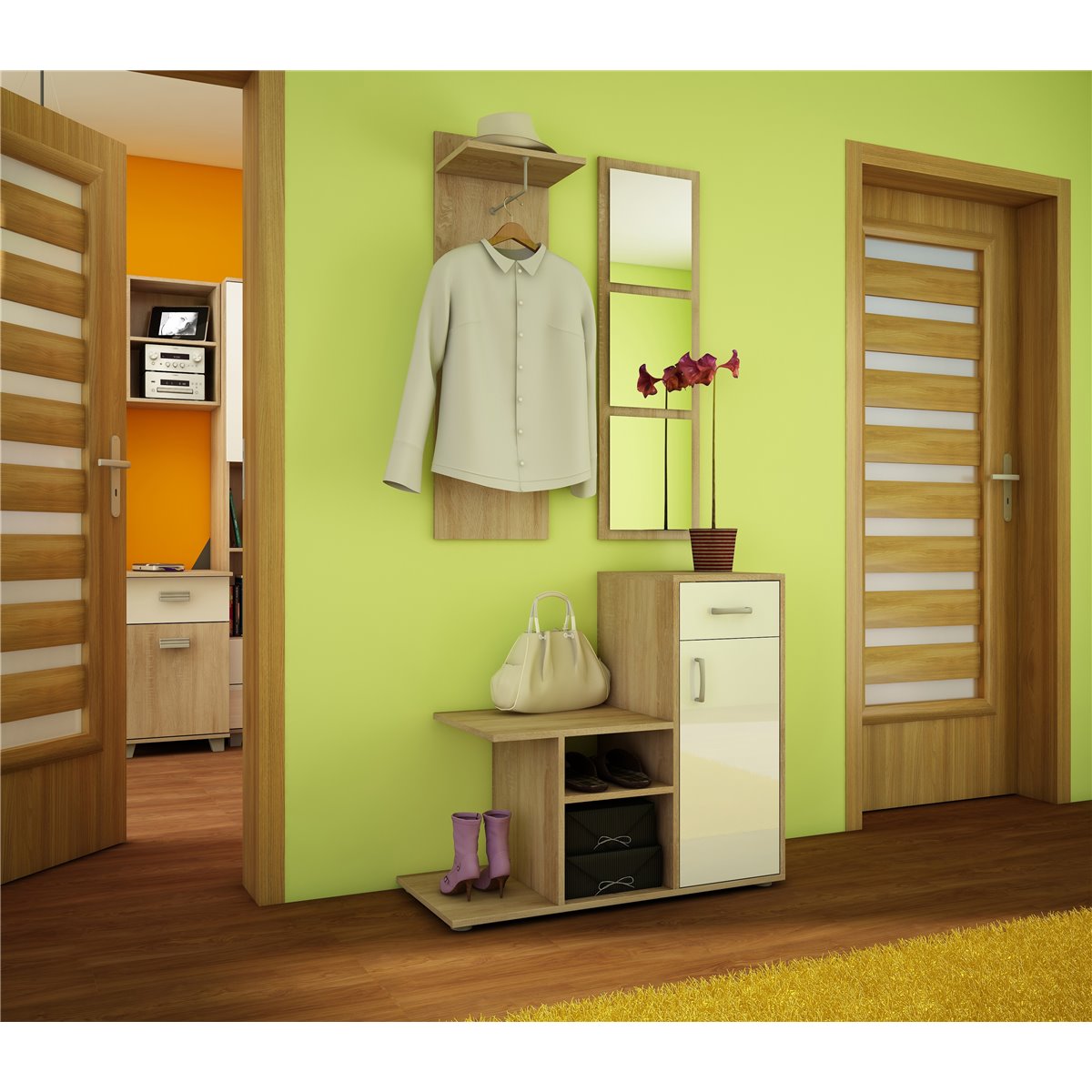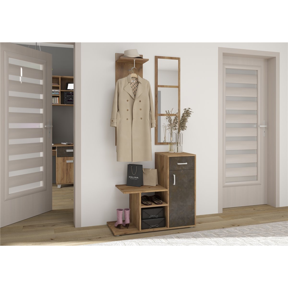 Przedpokój MIKA to praktyczny mebel w szerokiej gamie kolorów do wyboru, który idealnie wpasuje się w każdą kolorystyke pomieszczenia. Ten funkcjonalny komplet mebli, będzie świetnym wyborem do niewielkiego pomieszczenia.
