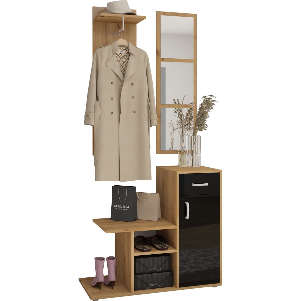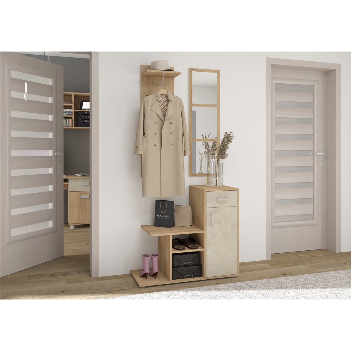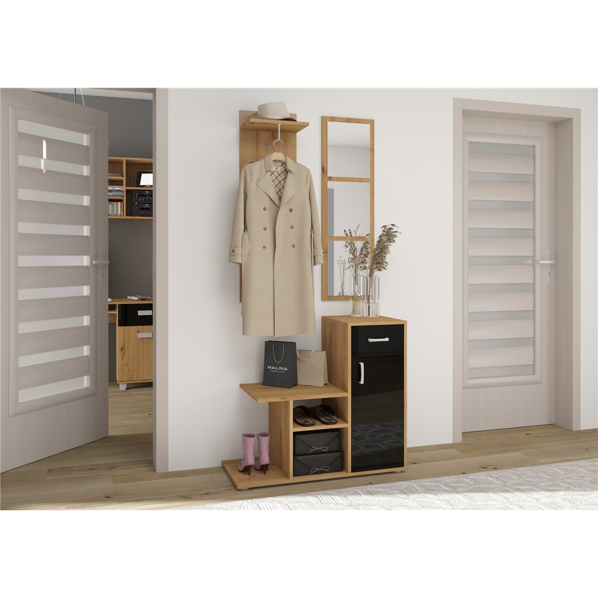 Przedpokój MIKA to praktyczny mebel w szerokiej gamie kolorów do wyboru, który idealnie wpasuje się w każdą kolorystyke pomieszczenia. Ten funkcjonalny komplet mebli, będzie świetnym wyborem do niewielkiego pomieszczenia.