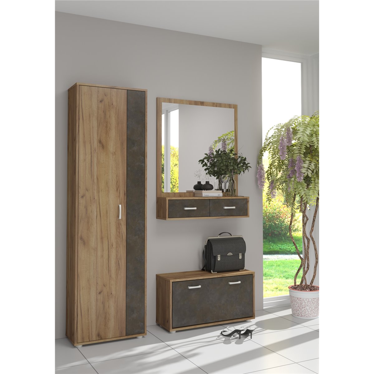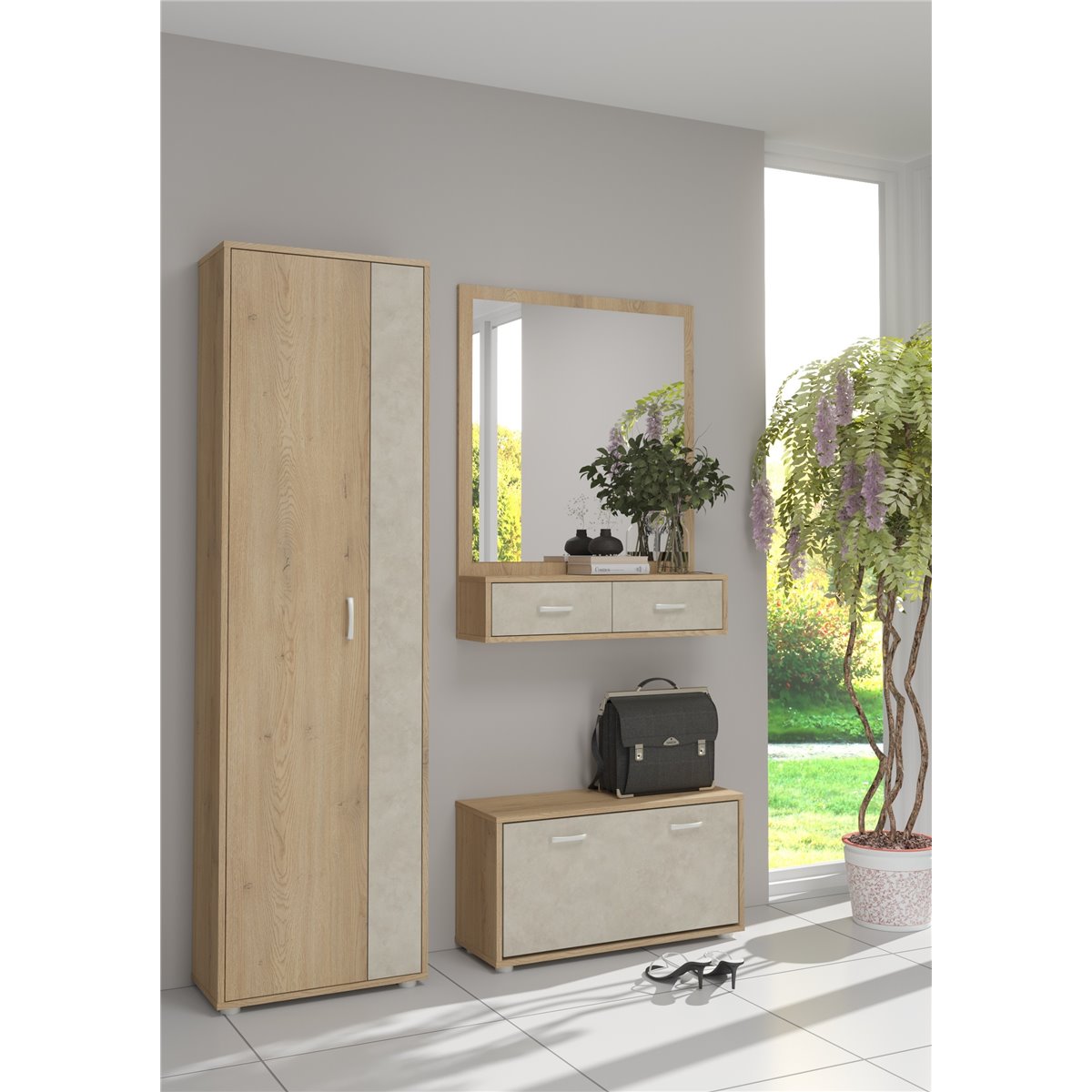 Przedpokój PORTO to praktyczny mebel w szerokiej gamie kolorów do wyboru, który idealnie wpasuje się w każdą kolorystyke pomieszczenia. Ten funkcjonalny komplet mebli, będzie świetnym wyborem do niewielkiego pomieszczenia.