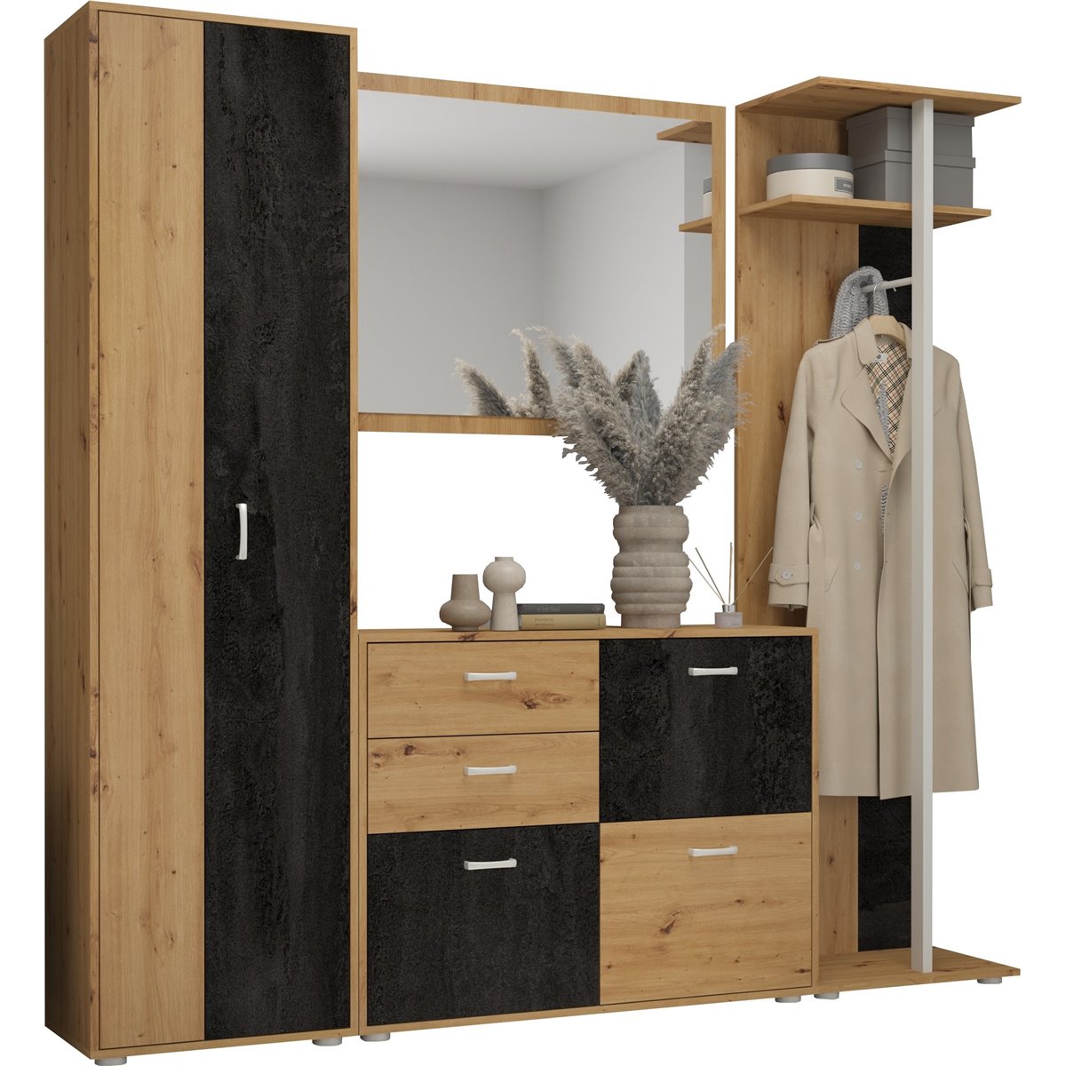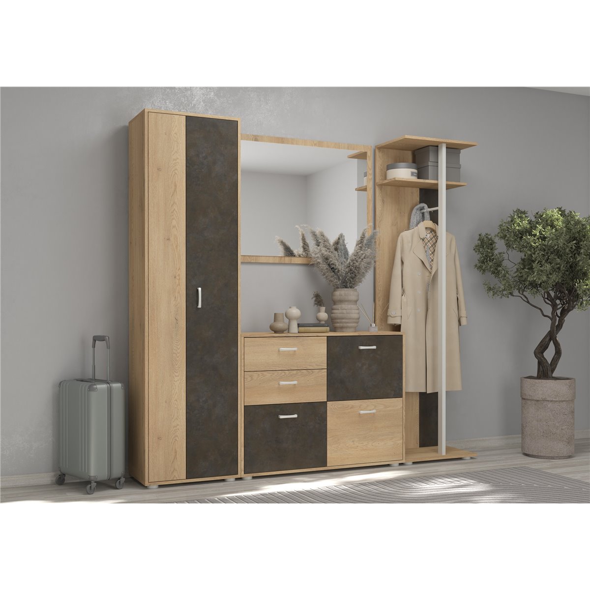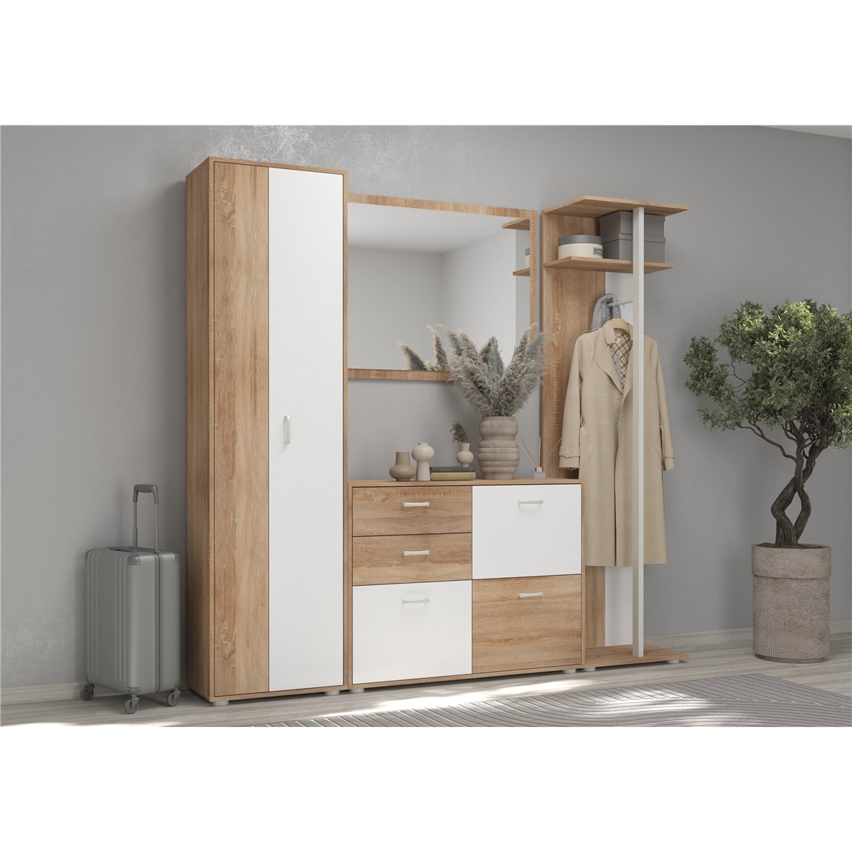 Przedpokój 7 to praktyczny mebel w szerokiej gamie kolorów do wyboru, który idealnie wpasuje się w każdą kolorystyke pomieszczenia. Ten funkcjonalny komplet mebli, będzie świetnym wyborem do niewielkiego pomieszczenia.