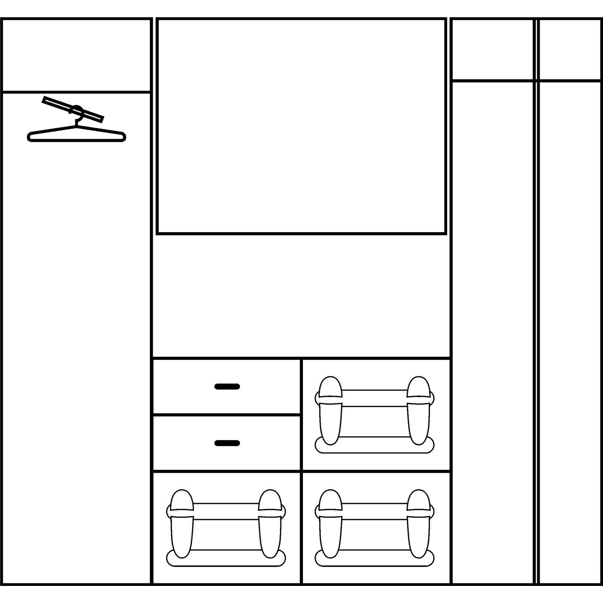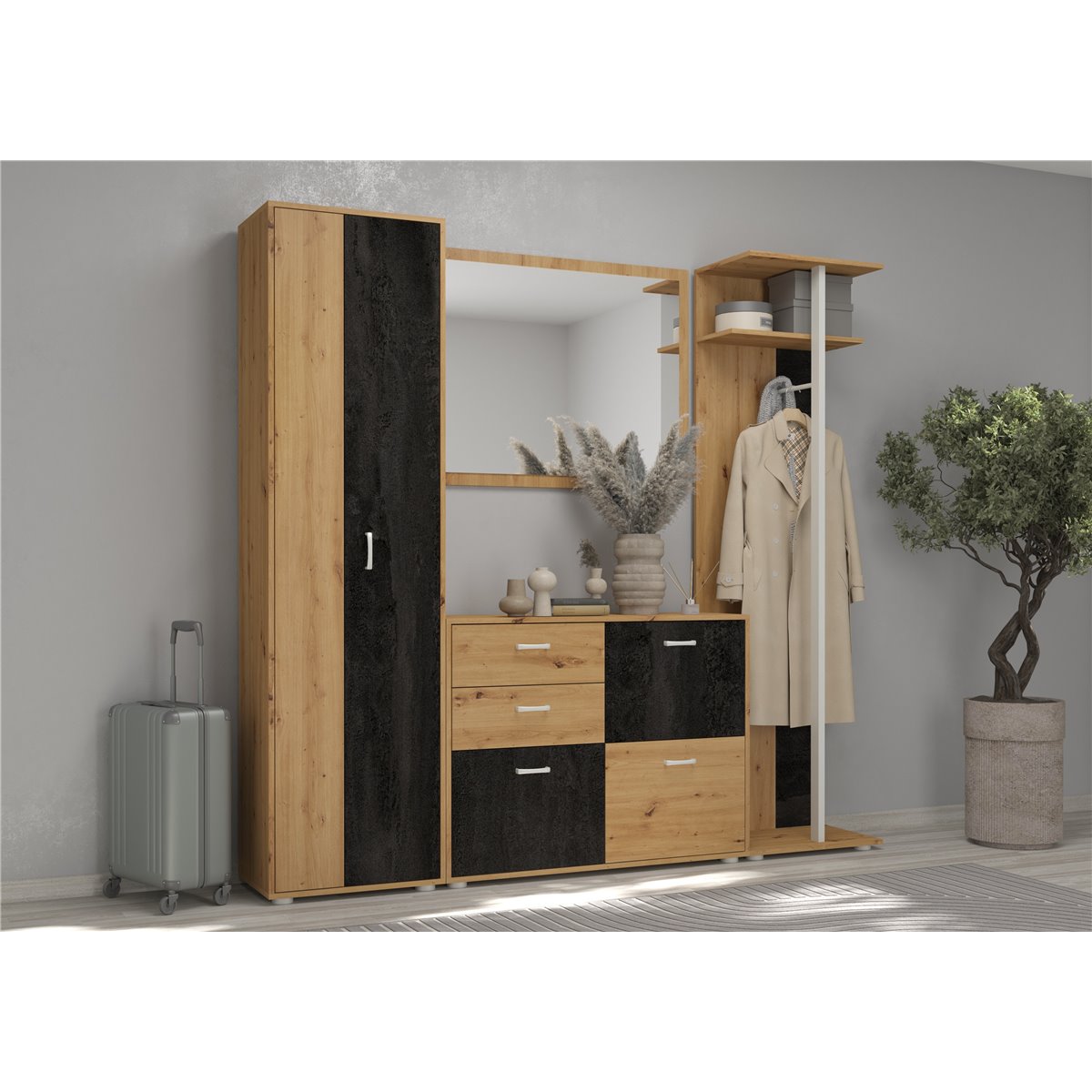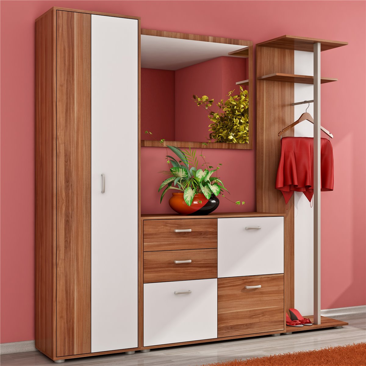 Przedpokój 7 to praktyczny mebel w szerokiej gamie kolorów do wyboru, który idealnie wpasuje się w każdą kolorystyke pomieszczenia. Ten funkcjonalny komplet mebli, będzie świetnym wyborem do niewielkiego pomieszczenia.