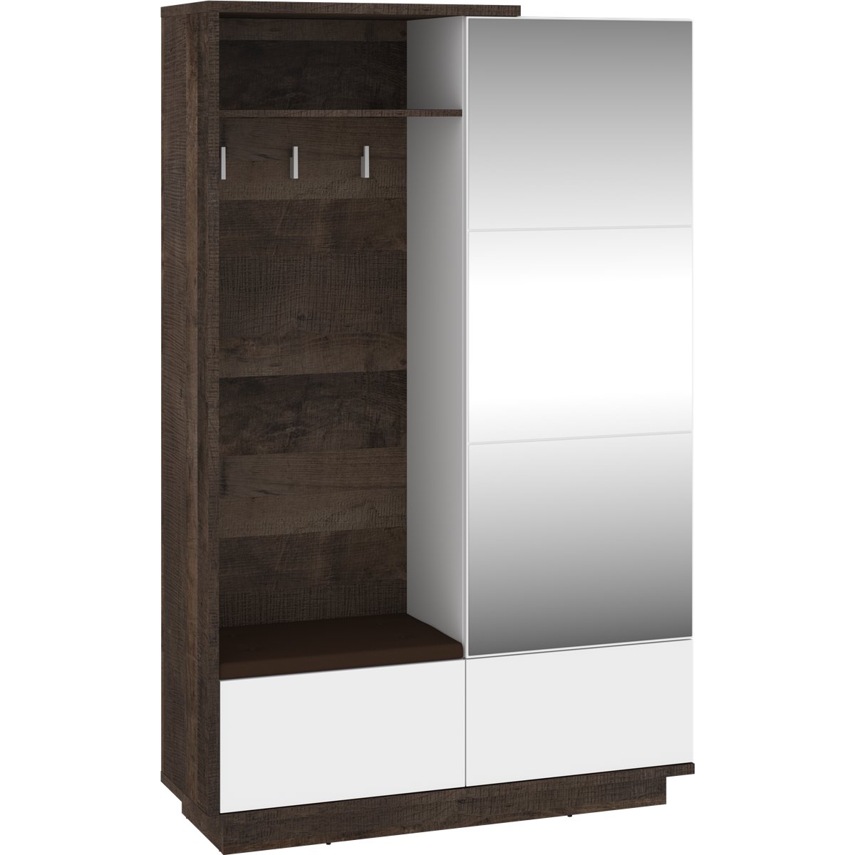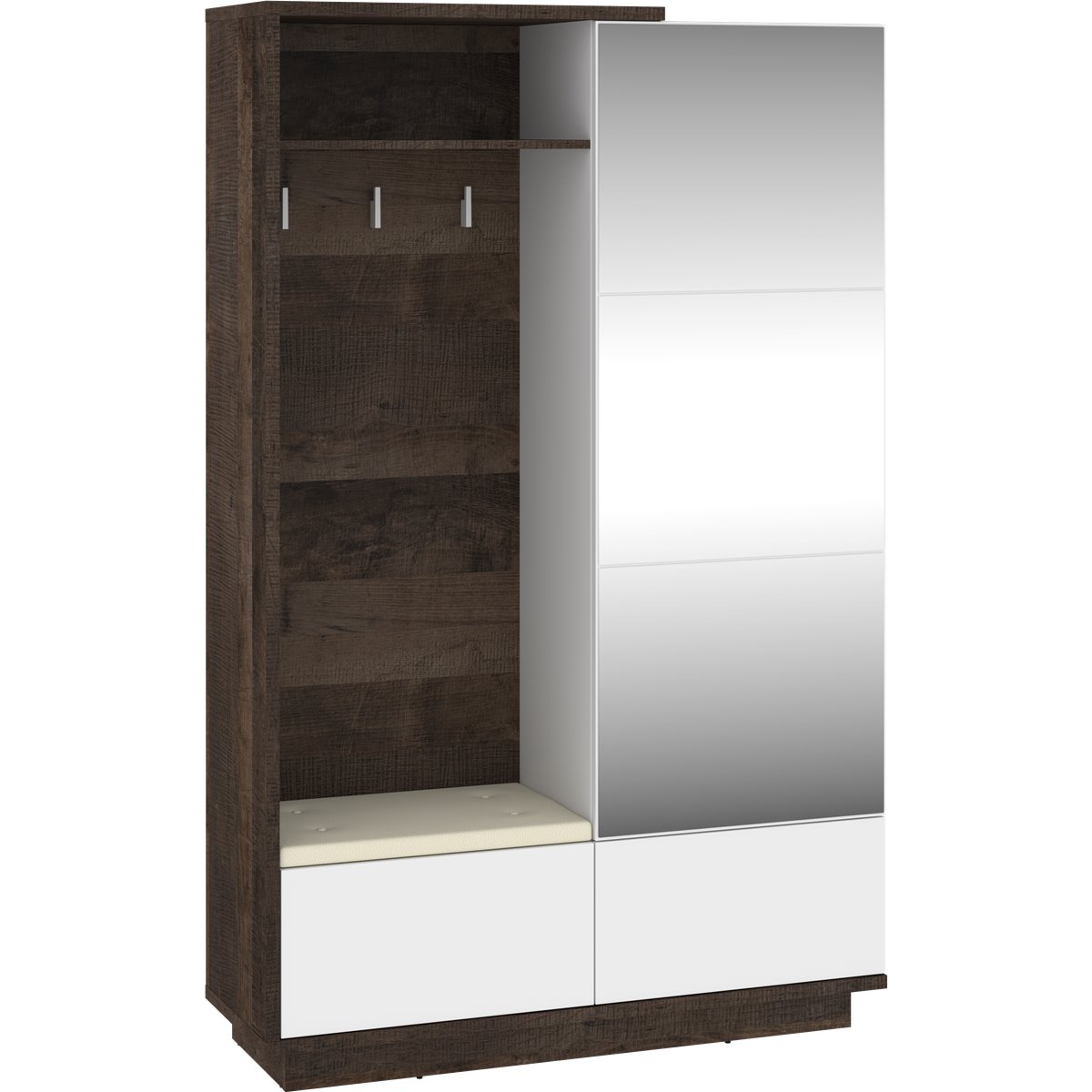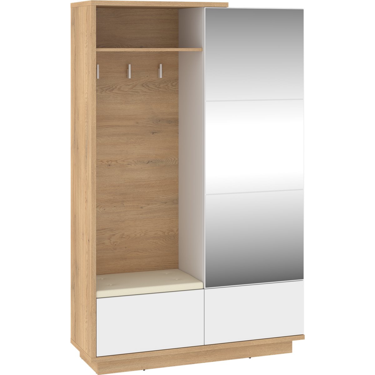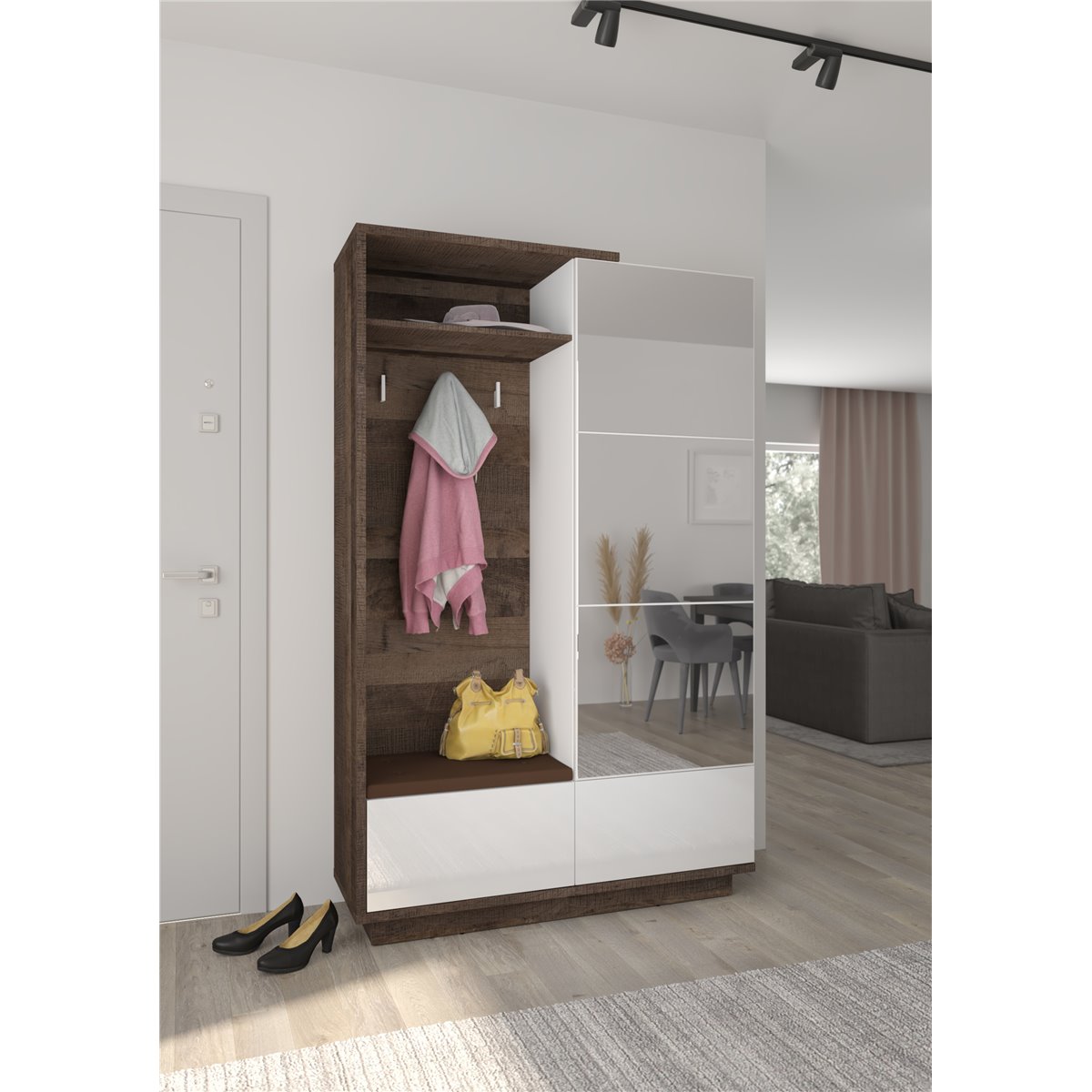 Przedpokój HYBRID wyposażony został w 1-drzwiowy front z lustrem, za którym kryje się półka oraz drążek na wieszaki, a także w komfortowe siedzisko w kolorystyce do wyboru pod którym kryje się dodatkowa szafka. Drzwi i szuflady w standardzie wyposażone zostały w system otwierania "push to open" co eliminuje typowe uchwyty, a naciśnięcie na front sprawia że płynnie się otwierają.