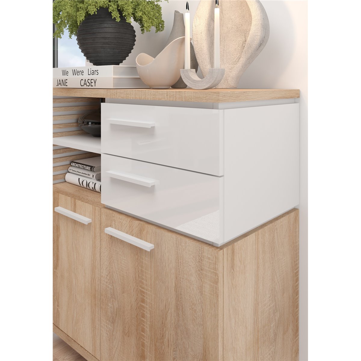Nowoczesna kolekcja mebli LAMIR to wzornictwo przeznaczone do aranżacji pokoju dziennego, przedpokoju oraz pokoju młodzieżowego. Do wyprodukowania mebli wykorzystano wysokiej jakości płyty meblowe laminowane w kilku wersjach kolorystycznych do wyboru. Dzięki użytym wysokiej jakości materiałom mamy pewność, że meble starczą nam na długie lata.