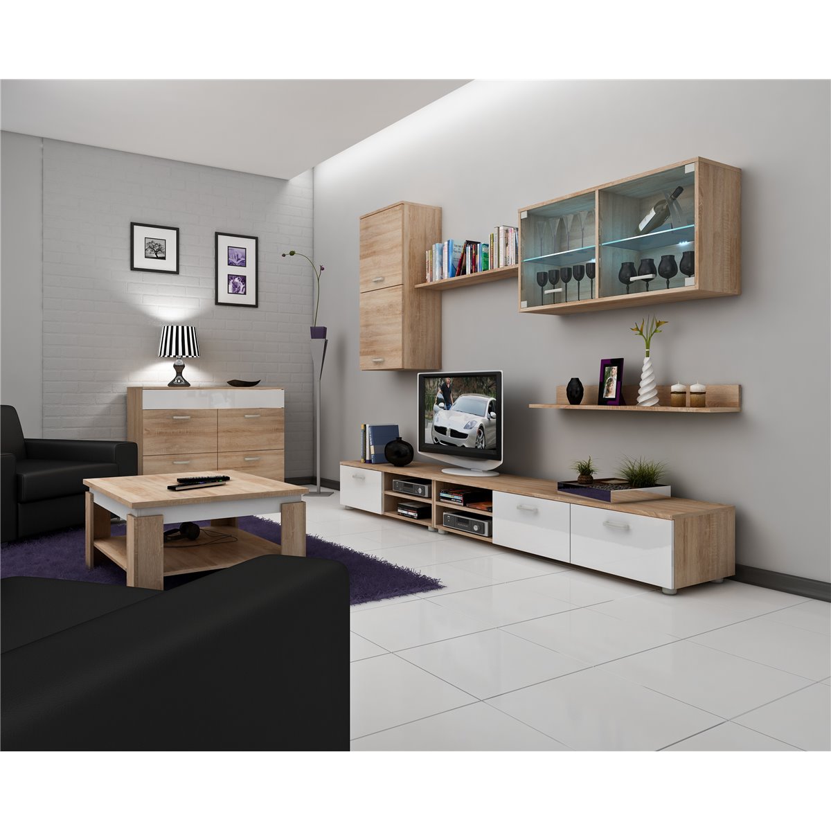 Nowoczesny zestaw mebli MAGIC to idealny pomysł do salonu lub pokoju młodzieżowego. W głównej mierze bazuje na modnych niskich szafkach, które są idealną podstawa do stworzenia centrum multimedialnego, w którym pomieścimy wszystkie sprzęty. Nowoczesny charakter podkreślają ciemne fronty o wysokim połysku i stylowe uchwyty. W systemie znaleźć można również półki, witryny, szafki wiszące i komody, które pozwolą stworzyć wymarzony zestaw do pokoju. MAGIC to propozycja kultowych mebli dostępnych w ciekawej kolorystyce.