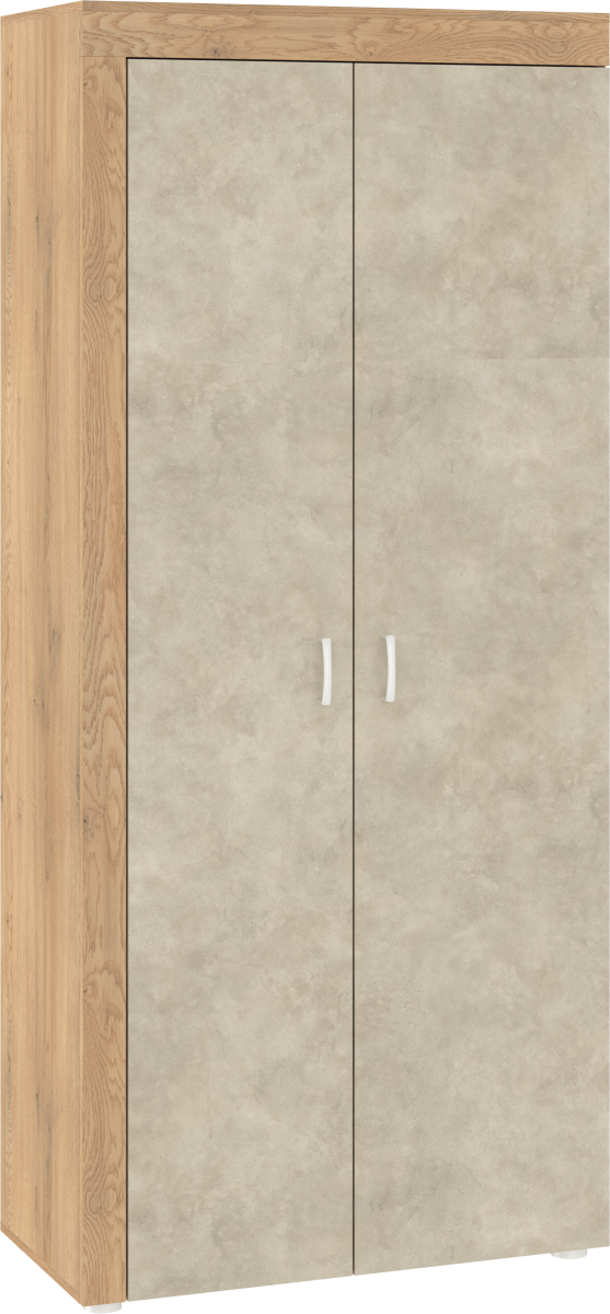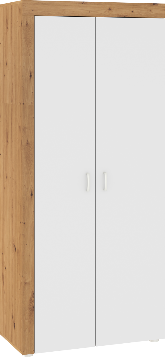 Szafa MAMBA wyposażona została w 2-drzwiowy front. Wewnątrz kryję się drążek na wieszaki oraz półka. Uchwyty wykonane zostały z tworzywa sztucznego w kolorze satyny.