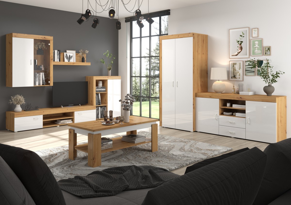 Ciekawe kontrasty kolorystyczne to podstawowy wyróżnik nowoczesnego systemu MAMBA. W ofercie można znaleźć idealną propozycję do salonu zarówno pod względem barwy, jak i rodzaju wykończenia. Poza tym MAMBA to szereg różnych mebli, które można w ciekawy sposób łączyć ze sobą, tworząc przestrzeń idealną do przechowywania, eksponowania najważniejszych rzeczy w witrynach i na półkach oraz stworzenia miejsca dla multimediów. Nowoczesne szerokie płyty korpusów oraz staranne wykończenie sprawiają, że jest to zestaw interesujący i ponadczasowy. MAMBA to propozycja kultowych mebli dostępnych w ciekawej kolorystyce.