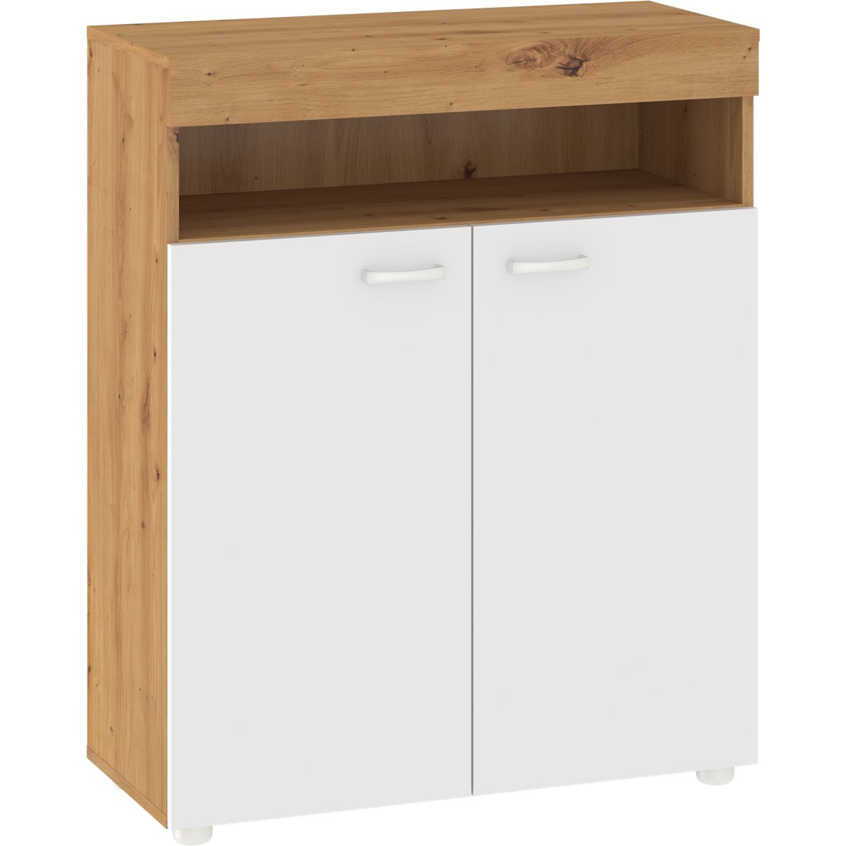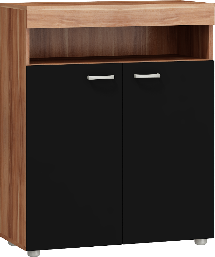 Rega niski MAX wyposażony został w 2-drzwiowy front. Uchwyty wykonane zostały z tworzywa sztucznego w kolorze satyny.