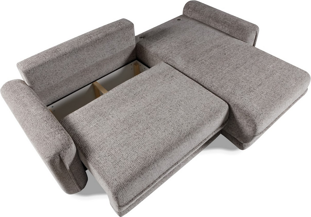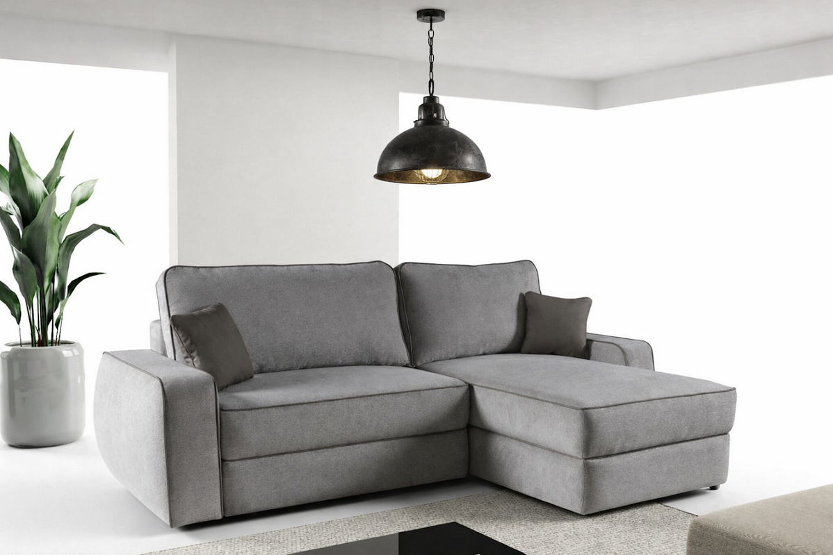 Głównym atutem jest mechanizm rozkładania DL automat, który umożliwia szybkie i wygodne przekształcenie narożnika w komfortowe łóżko. Dzięki zastosowaniu automatu, proces rozkładania jest niezwykle intuicyjny i nie wymaga użycia dużej siły. Pod siedziskiem znajduje się praktyczny pojemnik na pościel, do którego również dostać się można za pomocą wspomnianego wcześniej systemu rozkładania DL automat.