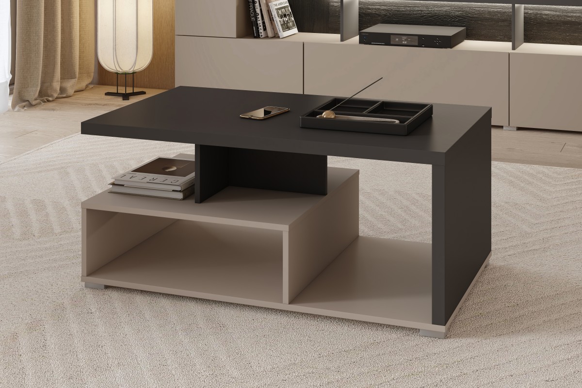 SERIO to nowoczesna kolekcja mebli do pokoju dziennego oraz salonu łącząca w sobie modny design i funkcjonalność. Elegancki oraz modny kolor atracytu w połączeniem z wybarwieniem Congo stworzy ciekawe wizualnie pomieszczenie. Urządź komfortowy salon w niebanalnym stylu!