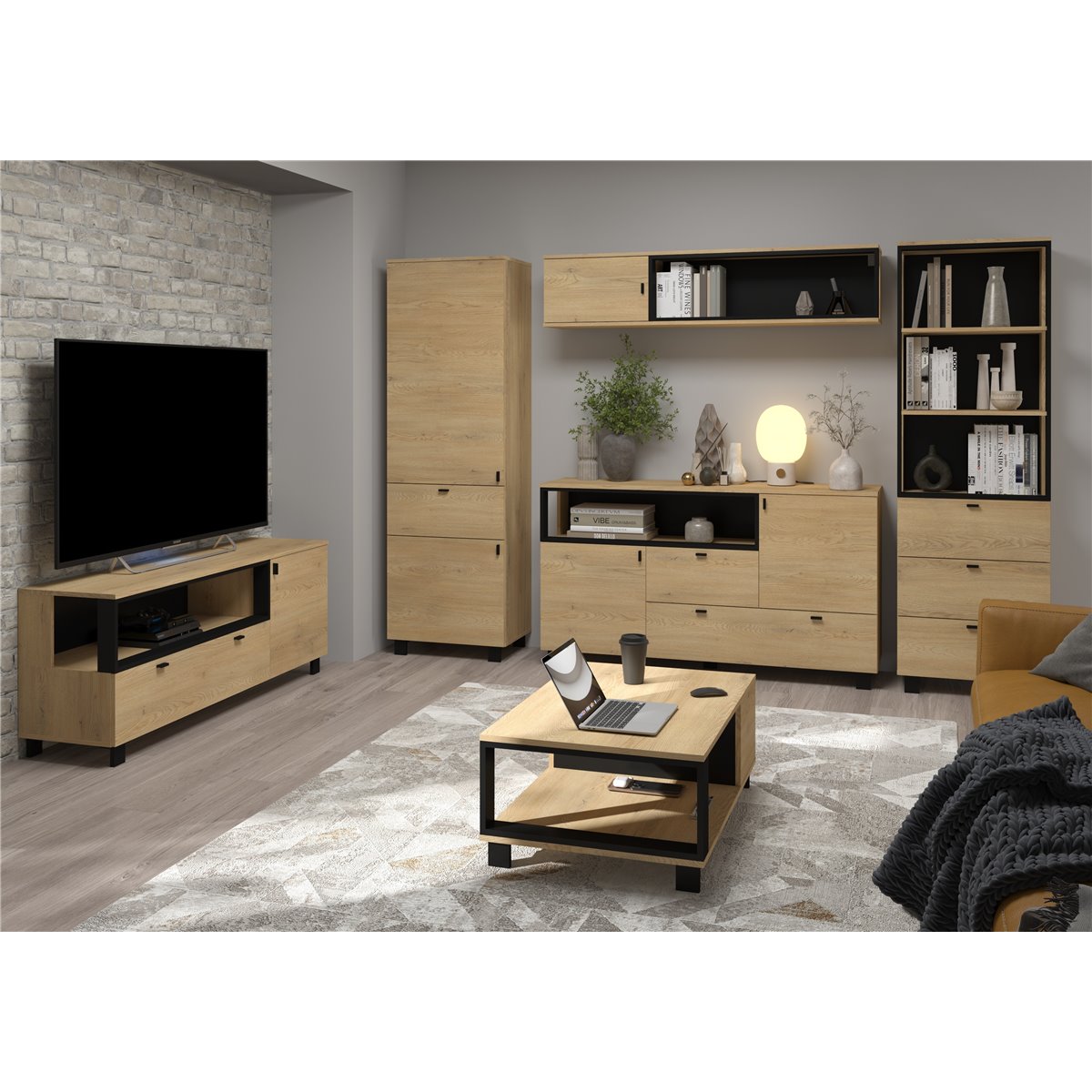Kolekcja VEGAS to idealny pomysł do salonu lub pokoju dziennego. Na uwagę zasługują szczególnie zastosowane ramki wokół otwartych półek co daje ciekawy efekt wizualny. Do produkcji mebli wykorzystano wysokiej jakości płyty laminowane oraz akcesoria, dzięki czemu meble są trwałe i solidne. Dodatkowego uroku i funkcjonalności dodają wysokie nóżki, dzięki którym sprzątanie salonu będzie łatwe i przyjemne.