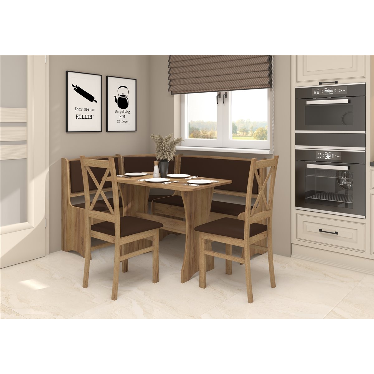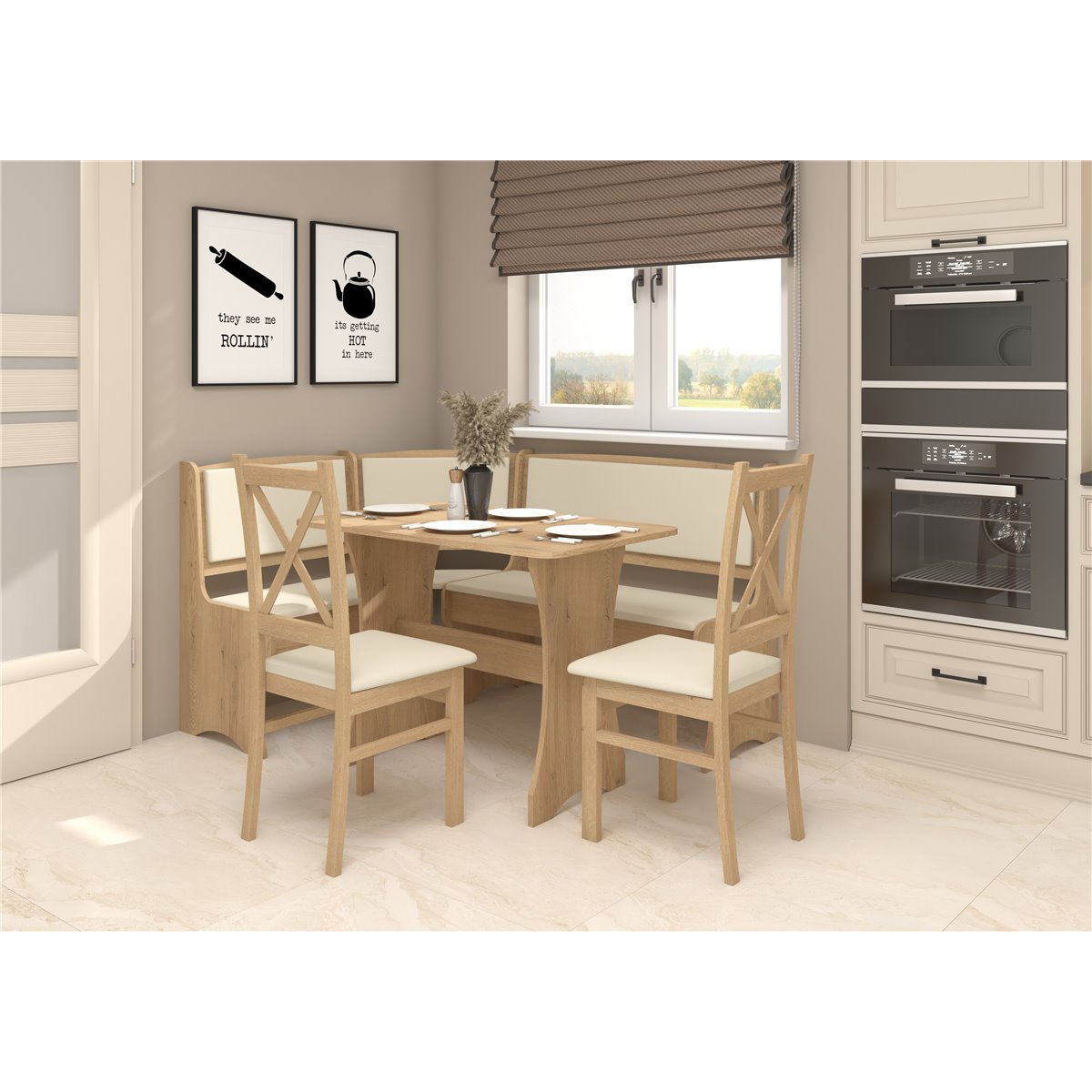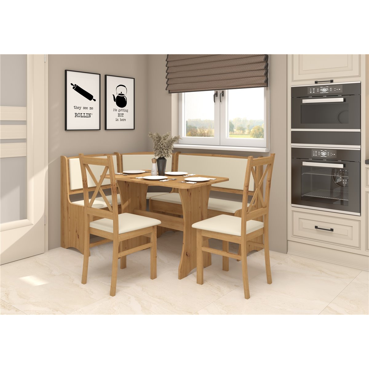 Zestaw kuchenny to praktyczne wyjście do małych lub średnich kuchni w szerokiej gamie kolorów do wyboru, który idealnie wpasuje się w każdą kolorystyke pomieszczenia. Komfortowe siedzisko i oparcie zapewnia wygodę przy rodzinnych obiadach czy spotkaniach ze znajomymi.